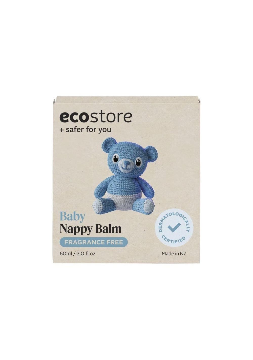 Ecostore: Baby Nappy Balm – 60ml Soothe and protect from nappy rash with our gentle fragrance free nappy balm. Made with zinc oxide and New Zealand Horopito extract it nourishes and helps protect irritated skin. Dermatologically tested for sensitive skin Made from plant and mineral-based ingredients Nourishes skin with olive and coconut oil Tip:To help prevent nappy rash, after bath time gently pat baby completely dry before you put him/her in nappies – as moisture encourages nappy rash. Put nappies on just snug enough to prevent leaks but not so tight they chafe. Avoid scented wipes or nappies, which can be drying and irritating. Use unscented wipes, warm water and cotton balls, or a soft damp flannel. Give your baby’s bottom some fresh air regularly by placing a cloth nappy or towel underneath, and let them enjoy being nappy-free. Directions for Use:For best results, apply balm with every nappy change to help protect skin from nappy rash. FSC CardboardCertified by the Forest Stewardship Council to promote environmentally appropriate, socially beneficial, and economically viable management of the world’s forests. Safer For Our EnvironmentThe ingredients in our Baby Nappy Balm are suitable for your septic tank and are safer for the environment. With proper greywater systems in place, the water from your baby’s bath can safely be re-used on your flower gardens, lawns, and trees. Ingredients When developing our products, we check all our ingredients against international safety standards.If there’s ever any doubt about an ingredient’s safety, we look for an alternative.We make our products to the highest quality and environmental standards, so you can be sure they’re safer for you and our world. Cocos Nucifera (Coconut) OilPseudowintera Colorata (Horopito) Leaf ExtractSesamum Indicum (Sesame) Seed OilZinc OxideCera Alba (Beeswax)Olea Europaea (Olive) Fruit OilFragrance: Fragrance Free