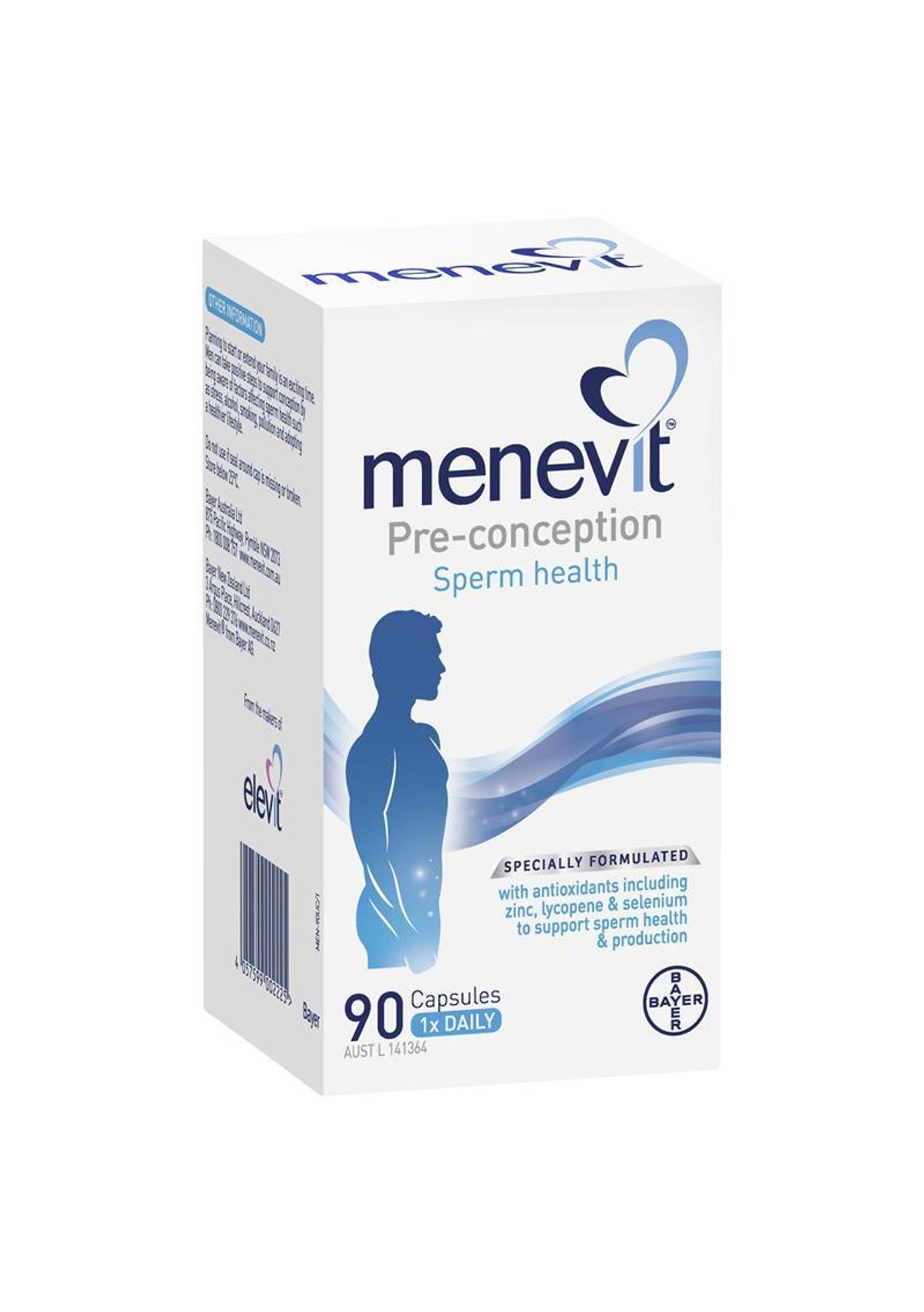 Menevit is a male fertility supplement that is specifically formulated to help promote sperm health. It takes two to make a baby and supporting sperm health is a great way for men to contribute in the early phase. Key BenefitsThe journey sperm undertake on their way to fertilise an egg has been likened to a human trying to swim several thousand kilometres.Put it that way and it’s easy to see why it is essential to create a healthy environment for sperm production.Made with a unique combination of antioxidants, Menevit can help create a better environment, which includes protecting against DNA damage to support male fertility and sperm health. DosageMen – Take one capsule daily with food.Men should start taking Menevit three months before trying for a baby, and continue taking Menevit whilst actively trying for pregnancy or as directed by their healthcare professional. Why choose Menevit?Baby making is a two person job and there’s a lot men can do to help improve a couple’s chances of getting pregnant.While quitting smoking, reducing alcohol, and remaining fit and active are all essential, a daily supplement can play its part. Menevit is from the makers of Elevit with Iodine, New Zealand's No.1 pregnancy multivitamin*, and can help support sperm health for men, who are an equal partner in the baby making equation.