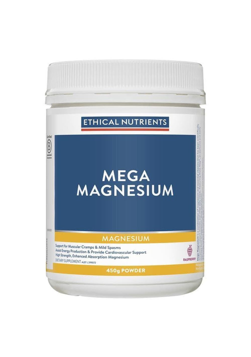 Ethical Nutrients MEGAZORB Mega Magnesium Raspberry helps support muscular aches, pains, cramps and spasms where the dietary intake of Magnesium is inadequate. Ethical Nutrients MEGAZORB Mega Magnesium features enhanced absorption Meta Mag, an exclusive and easily absorbed form of magnesium. This scientifically designed magnesium mineral and vitamin complex provides a multi-action effect. Directions: For therapeutic applications of magnesium: Add 1 scoop (8.7g) to 200mL of water twice daily. For daily magnesium supplementation: Add 1 scoop (8.7g) to 200mL of water once daily. Or as directed by a healthcare professional. Storage: Below 30°C. Ingredients: Each dose (8.7g) contains: Magnesium Amino Acid Chelate (Meta Mag - Magnesium Diglycinate) 3g. Equiv. Elemental Magnesium 300mg. Taurine 3g. Ascorbic Acid (Vitamin C) 300mg. Calcium Hydrogen Phosphate Dihydrate 290mg. Equiv. Elemental Calcium 68mg. Monobasic Potassium Phosphate 182mg. Equiv. Elemental Potassium 52mg. Pyridoxine Hydrochloride (Vitamin B6) 50mg. FREE FROM Gluten, Wheat, Dairy, Lactose, Eggs, Nuts, Yeast and Salt. No added artificial flavouring, colouring or preservatives. Warnings: WARNING - Stop taking this medication if you experience tingling, burning or numbness and see your healthcare practitioner as soon as possible. Always read the label. Use only as directed. If symptoms persist consult your healthcare professional. Vitamins and minerals are supplementary to and not a replacement for a balanced diet. Do not use if cap and/or bottle seals are missing or broken. This product is sold by weight not volume. Some settling may occur.