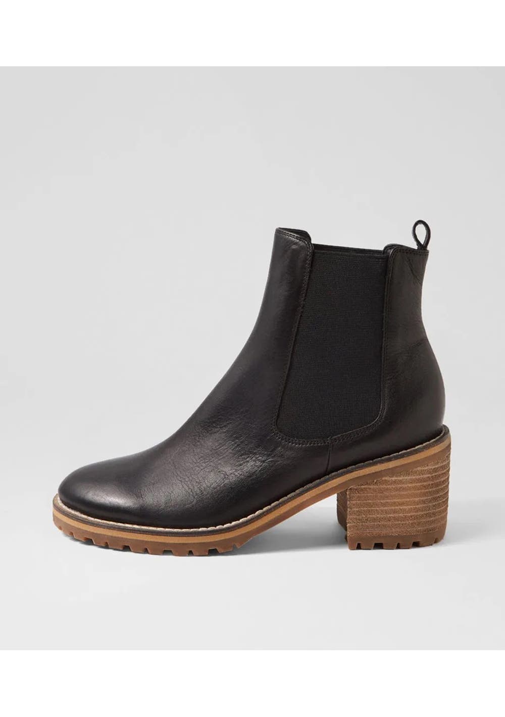 Mollini - Womens Biscotti Natural Heel Leather Ankle Boots - Black