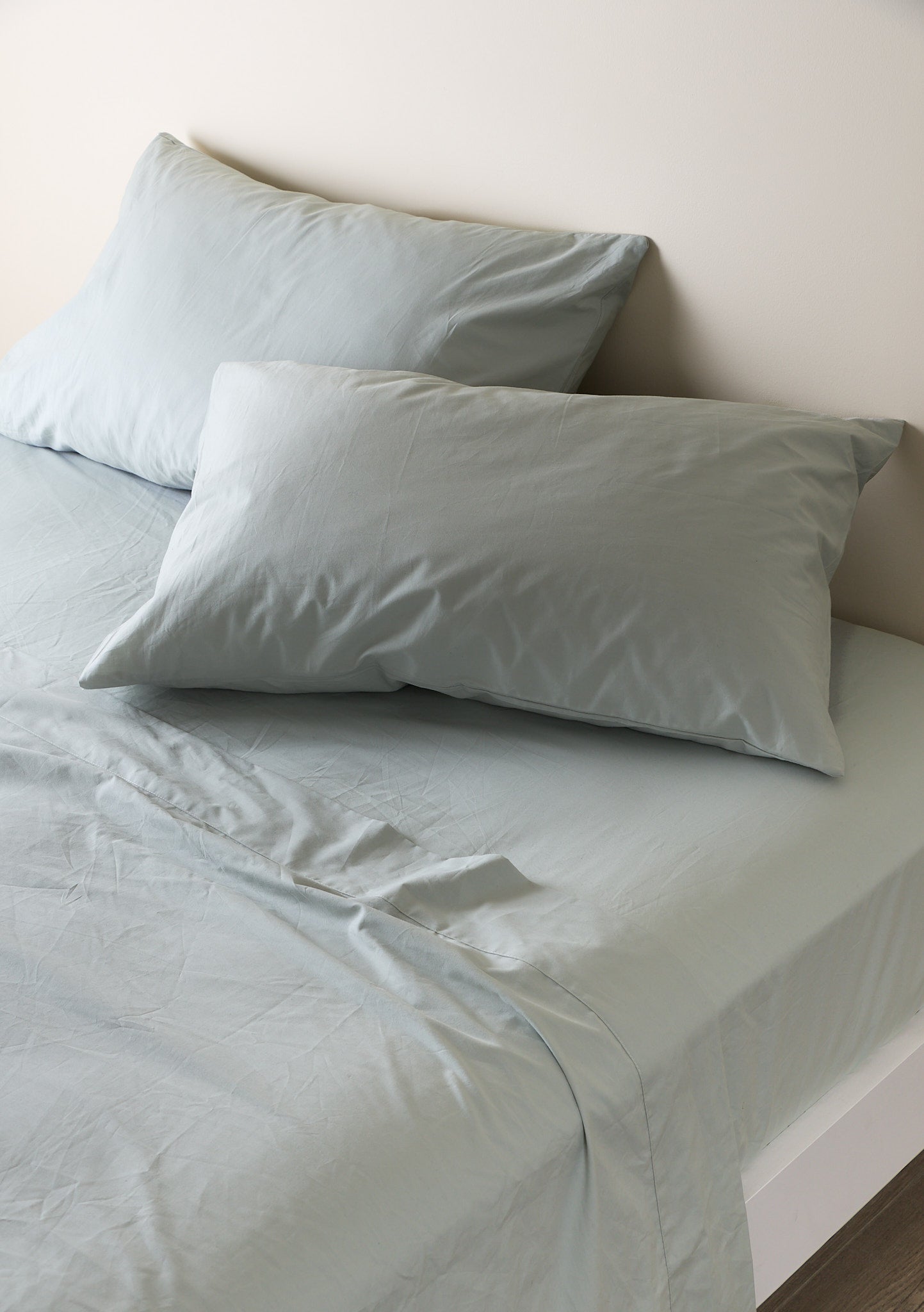 Designed Exclusively for Onceit and made from the finest quality 100% Stonewashed Cotton. Includes 1 x flat sheet, 1 x ftted sheet + Pillowcases. Yes it Includes matching pillowcases! Comes in a Matching Fabric Bag. Stonewashed Cotton is a fabulous, super soft, natural fabric making it extremely popular with many for an all year round perfect addition to your bedroom. Super King 1 Flat Sheet: 290x275cm  10cm Cuff 1 Fitted Sheet:  180x203x40cm 2 Pillowcases:  48x73cm + 15cm Flap   10cm Cuff PHOTOGRAPHY DISCLAIMER Colours of the product may appear slightly different from online images due to various factors such as studio lighting, editing process and individual device screen settings. While we make every effort to accurately represent our products online, we cannot guarantee exact colour matching every time. Your understanding is greatly appreciated.