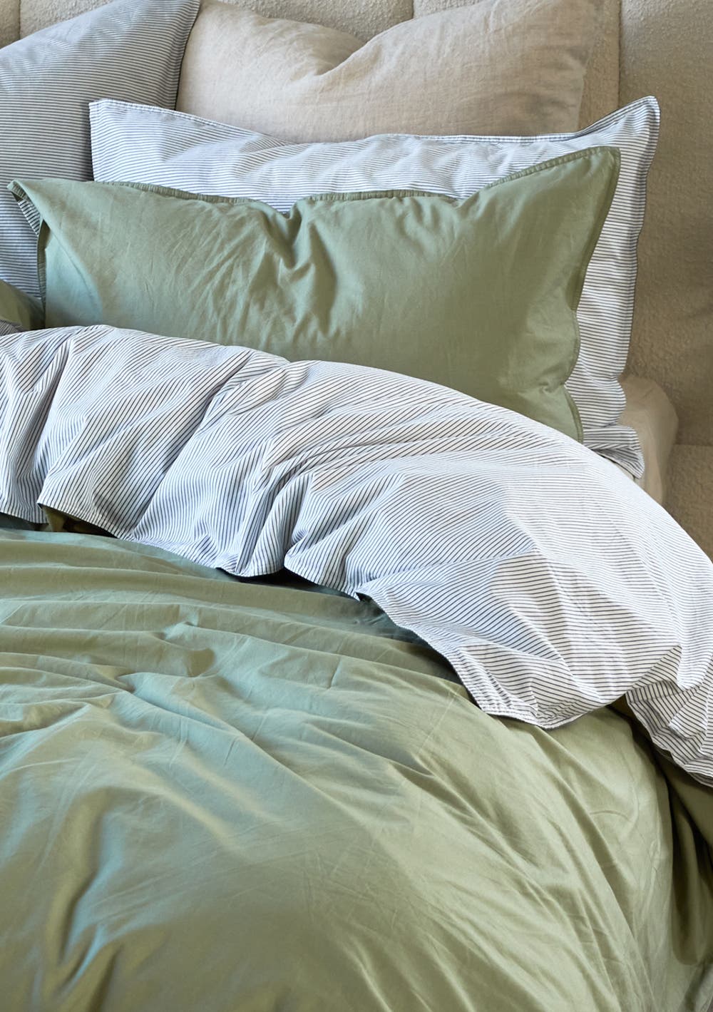 George Collective - Stonewashed Cotton Reversible Duvet Cover Set - Super King - Grey Stripe/Soft SagePREORDER