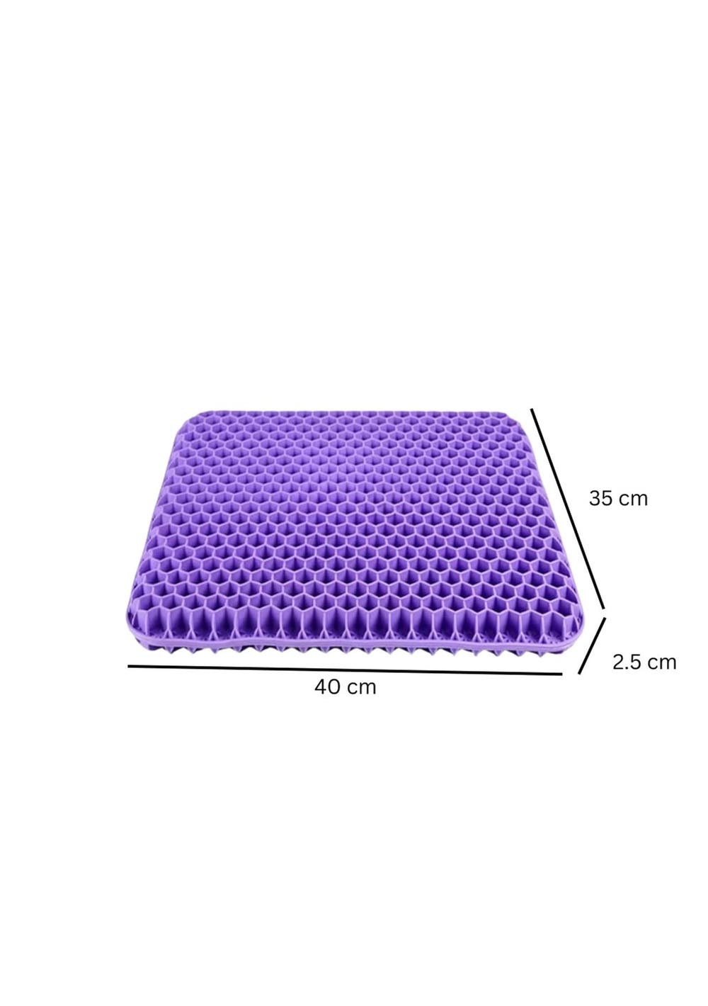 Product Description:The purple seat cushion offers enhanced comfort and support for those who sit for extended periods. Designed to reduce pressure on the hips and thighs, it provides relief from tailbone and lumbar spine discomfort, making it ideal for sedentary individuals. Its generous size prevents common issues like deformation or collapse, ensuring consistent support on most chairs.The seat cushion is ergonomically designed, soft, and flexible to fit the body's contours. It transforms stiff seating surfaces into comfortable ones, helping alleviate discomfort from sciatica, tailbone, hips, or buttocks. Whether working at a desk or driving for long hours, this cushion supports long-term sitting with reduced strain.The gel structure consists of thousands of air columns that allow for superior breathability. This design promotes rapid air circulation, keeping the cushion cool and reducing perspiration around the hips. The breathable material ensures all-day freshness and comfort.The purple gel cushion is versatile and suitable for a wide range of uses, including office chairs, wheelchairs, and car seats. It also makes a thoughtful gift for loved ones, especially for office workers, drivers, and wheelchair users who struggle with back and tailbone pain, offering a noticeable improvement in daily comfort.Product Specification:Material: Polyester Fiber + GelColor: PurpleSize: 40 x 35 x 2.5 cmWeight: 912 gFunction: Gel Seat Cushion Package Inclusion:1/2 x Gel Seat Cushion(s)