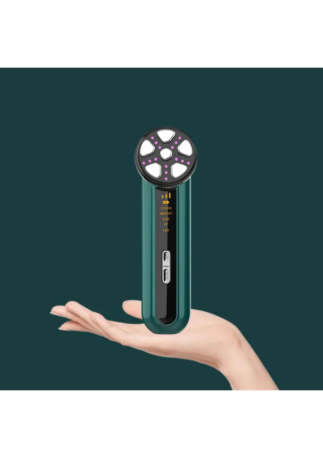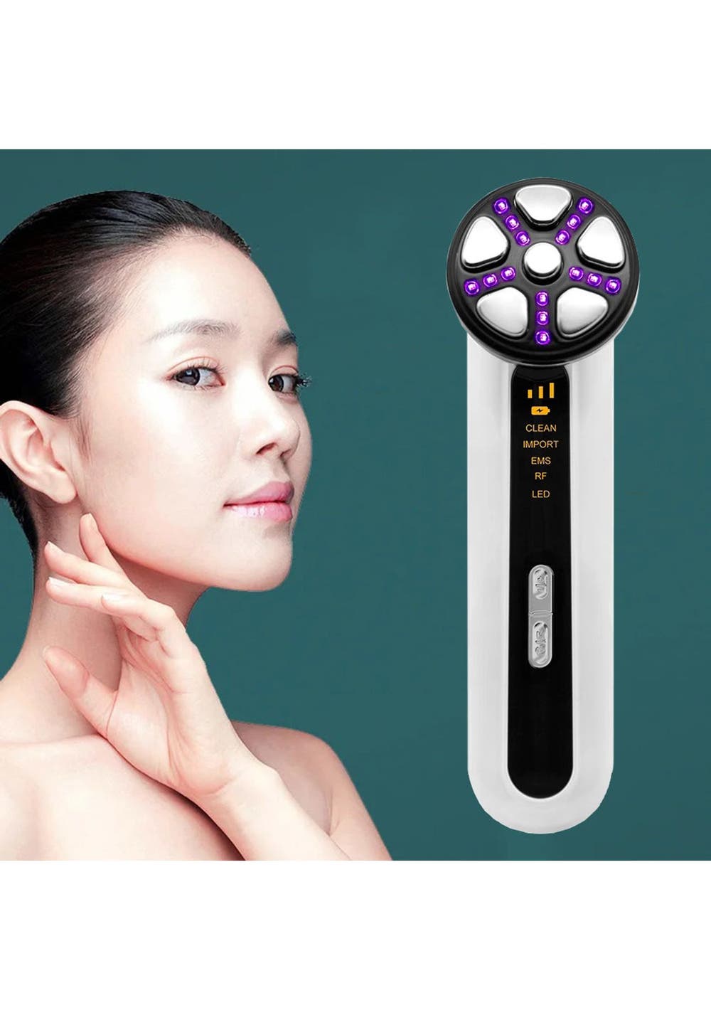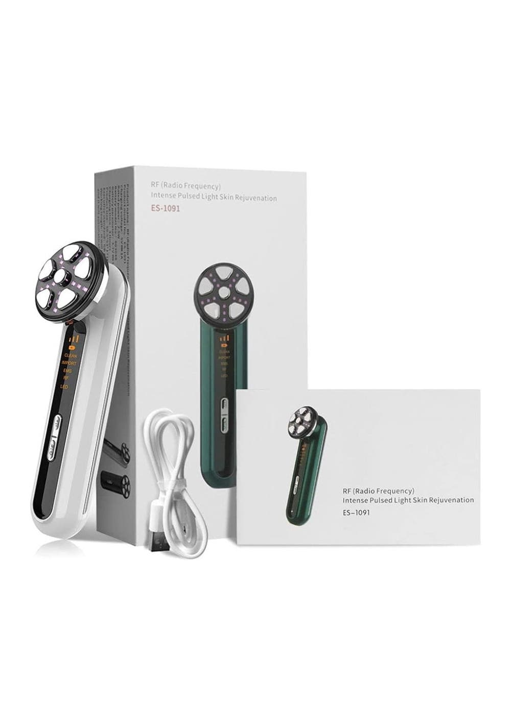 Product Description:The Microcurrent Facial Device is a multifunctional skincare tool designed to deliver professional-grade facial treatments at home. With five operating modes—Clean, Import, EMS, and LED Light Therapy—it addresses a wide range of daily skincare needs. The device uses dynamic frequency conversion microcurrent technology to stimulate collagen production in the dermis, resulting in smoother, firmer, and more radiant skin.The intelligent thermostatic system enhances the absorption of skincare products while improving skin microcirculation. By combining positive and negative ion technology, the device deeply cleanses the skin and promotes better penetration of active ingredients. Positive ions lift away residual dirt and impurities, while negative ions help nourish, hydrate, and restore the skin’s natural glow.The Microcurrent Facial Device also features four-color LED phototherapy, each offering unique skin benefits. Red light boosts collagen production and reduces fine lines, blue light tightens skin and refines pores, green light improves oxygen flow and circulation, and purple light helps combat acne and reduce blemish marks. This versatile light therapy system supports overall skin rejuvenation and clarity.Incorporating EMS technology, the device delivers low-level electrical currents to stimulate facial muscles, sculpt contours, and enhance overall skin tone and texture. With three adjustable intensity levels, users can tailor treatments to their comfort and skin sensitivity. Compact and easy to use, this facial tool offers a spa-quality skincare experience, making it an ideal addition to any beauty routine.Product Specification:Material: ABS + Stainless SteelColor: White, GreenRated power: 2.5wBattery Capacity: 1000mAhVoltage: 3.7VCharging Time: 3HSize: 5.5 x 5.3 x 17.1 cmWeight: 149 gFunction: Facial Device Skin Tightening MassagerPackage Inclusion:1 x Beauty Device1 x USB Cable1 x Pink Cloth 1 x User Manual