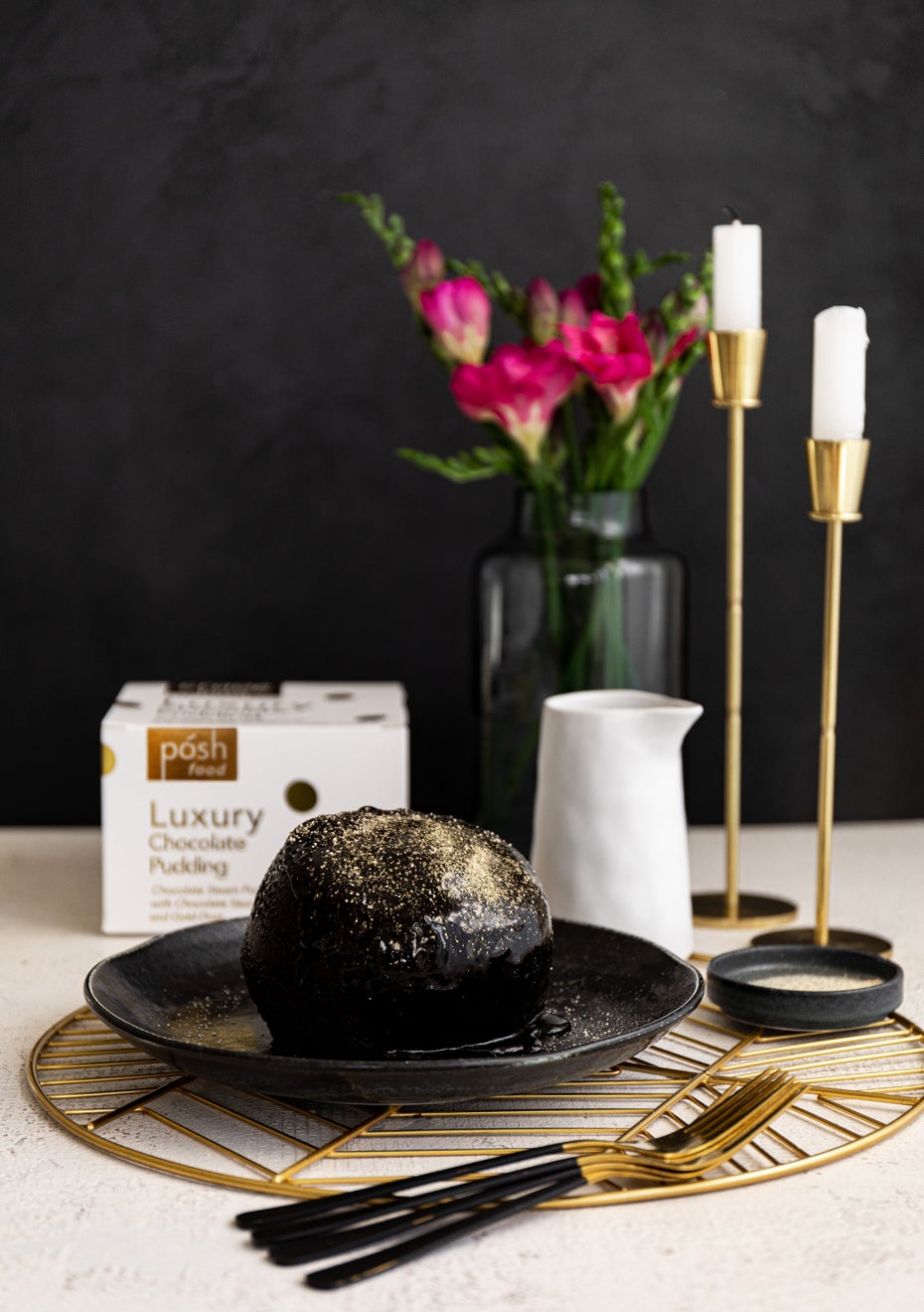 "Herb & Spice Mill - Large Luxury Chocolate Steam Pudding with Gold