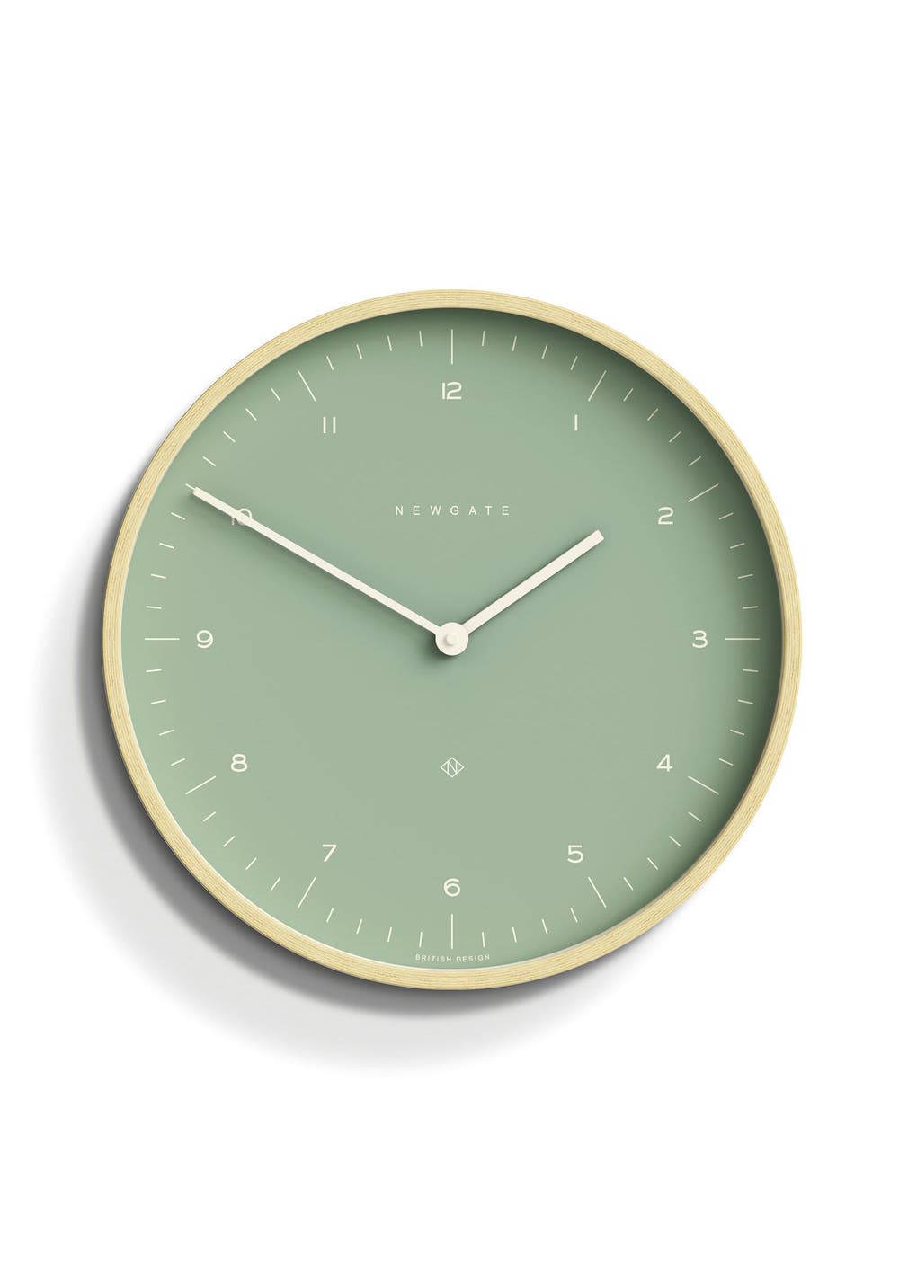 Newgate Mr Clarke Clock Pale Wood Bubble Green Dial 133 A modern Scandinavian-inspired wall clock with a pale plywood case and a contemporary Bubble Green dial with minimalist graphic numerals. Please note, this clock is made from real wood so there may be slight variations in the colour and grain as well as some natural wood knots, lines and joins. - Material: Plywood, Acrylic, Paper, Metal hands, Glass- Colour: Plywood w/ Green Dial- Movement: Quartz 'Silent Sweep'- Power: 1 x AA (not included)- Dimensions: LWH 4.5 x 40.5 x 40.5cm; 1.28kg