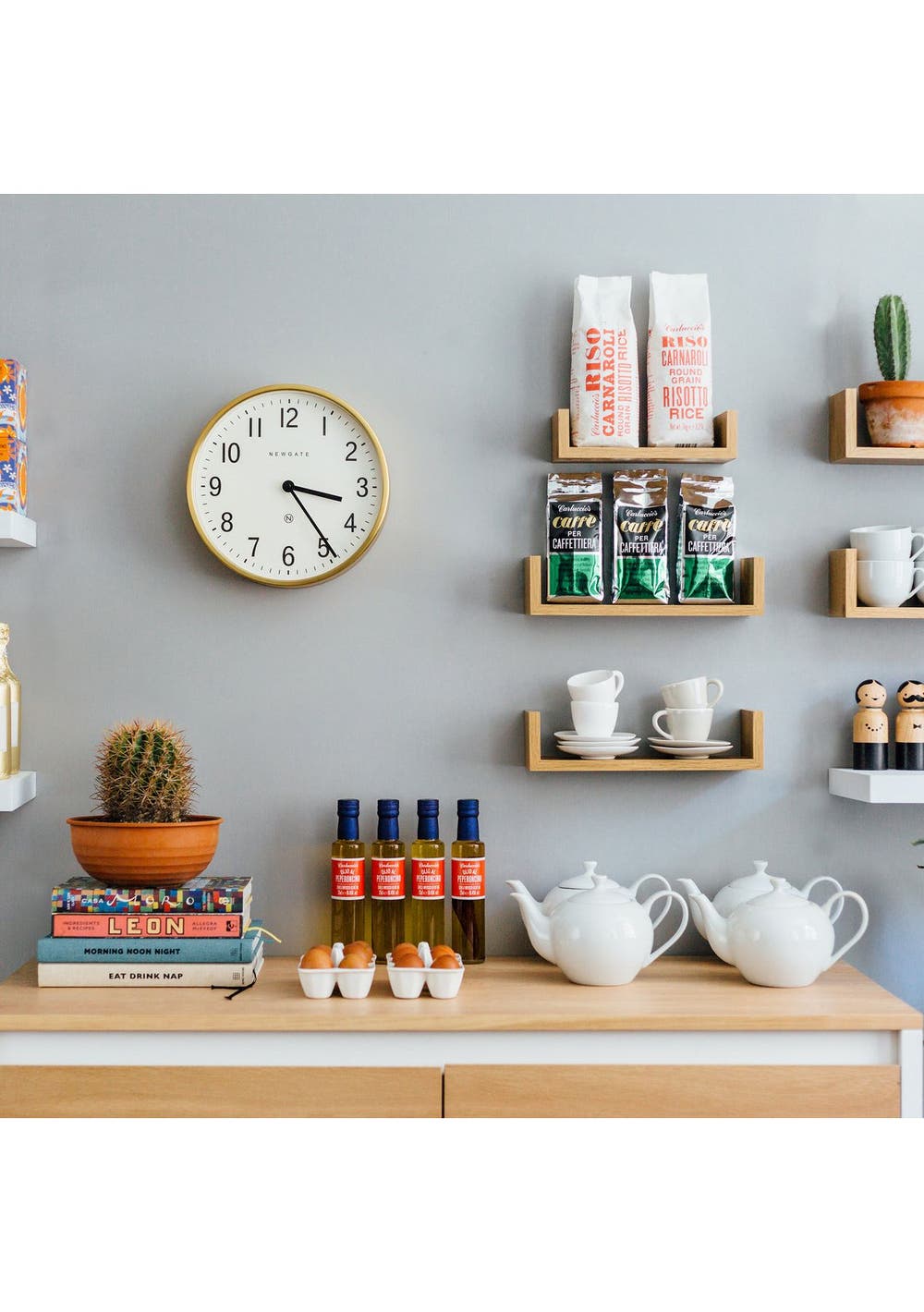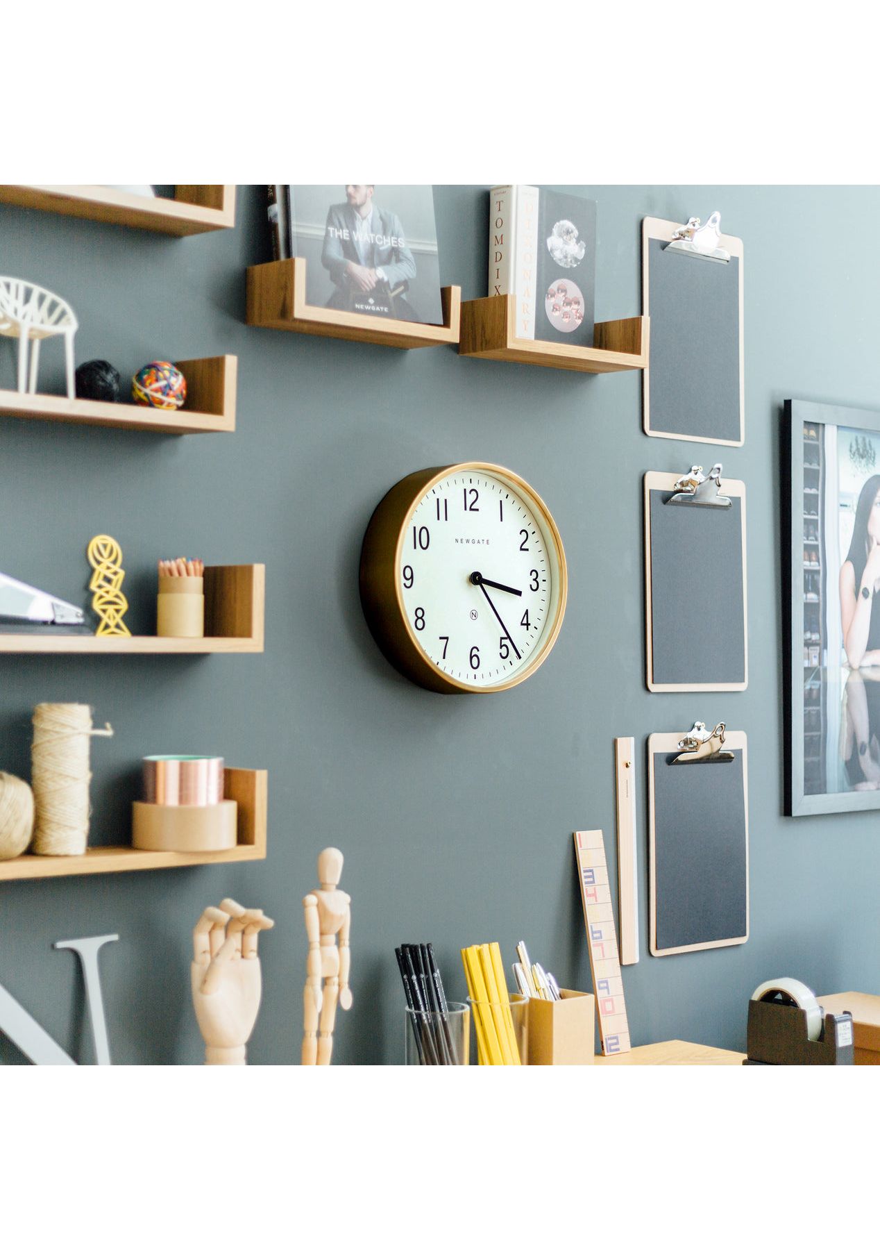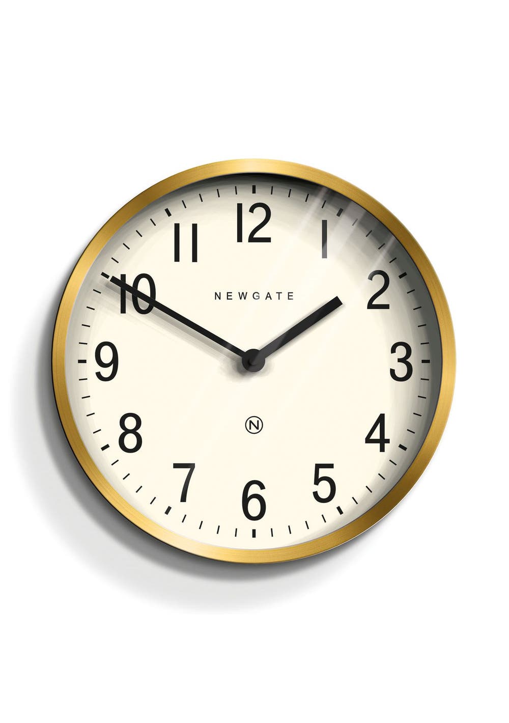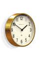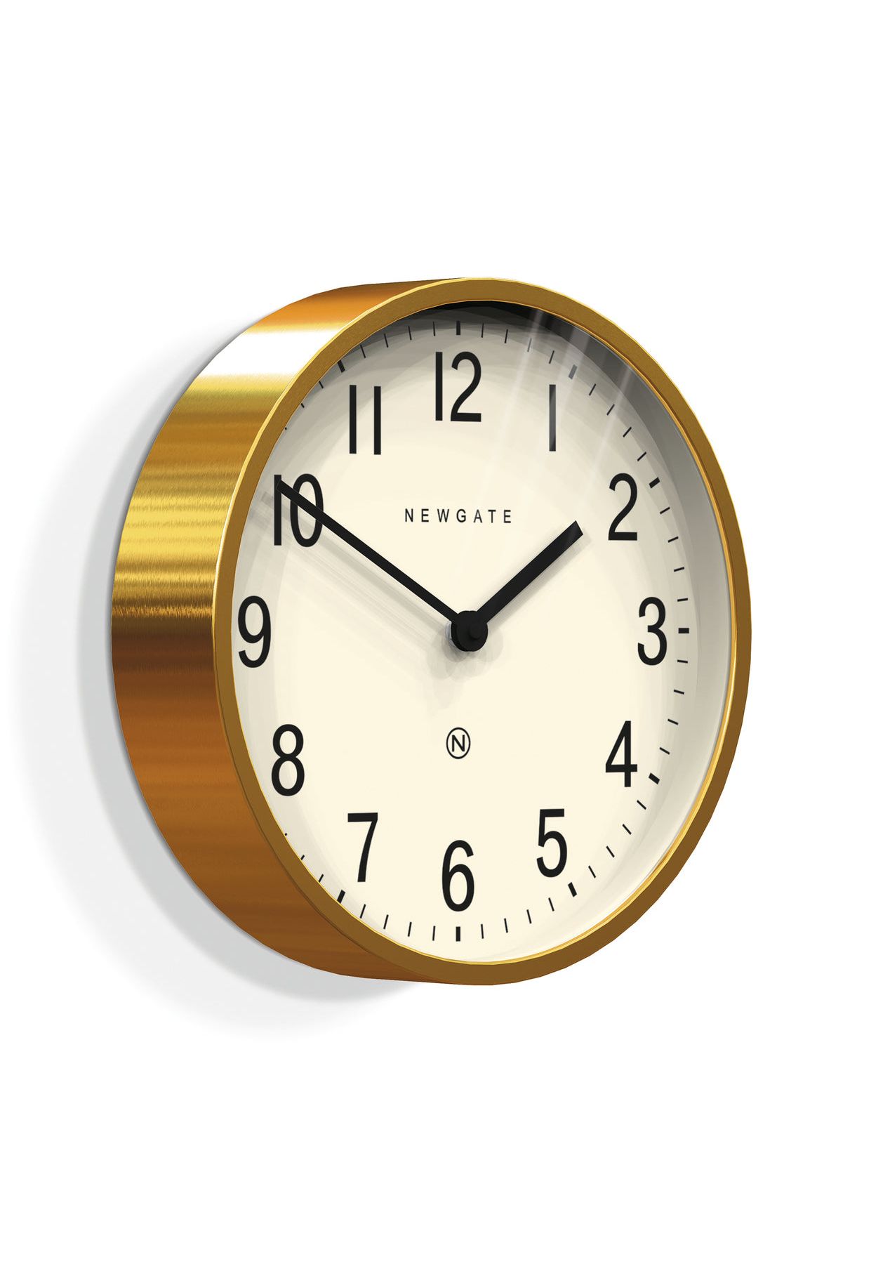 Newgate Master Edwards Clock Radial Brass A small radial brass effect wall clock fusing mid-Century modern design with contemporary minimalist style. The deep straight-cut metal case with radial brass effect finish holds a modernist dial and metal hands. - Material: Metal, Acrylic, Paper, Glass- Colour: Brass- Movement: Quartz 'Silent Sweep'- Power: 1 x AA (not included)- Dimensions: LWH 7.3 x 30 x 30cm- Weight: 0.93kg