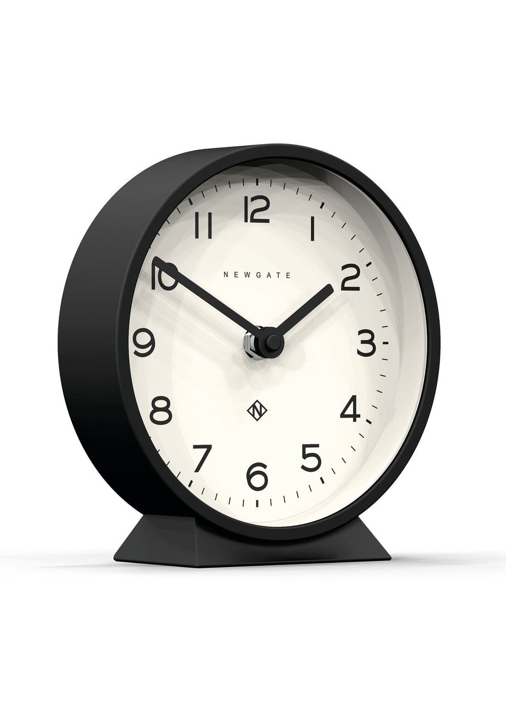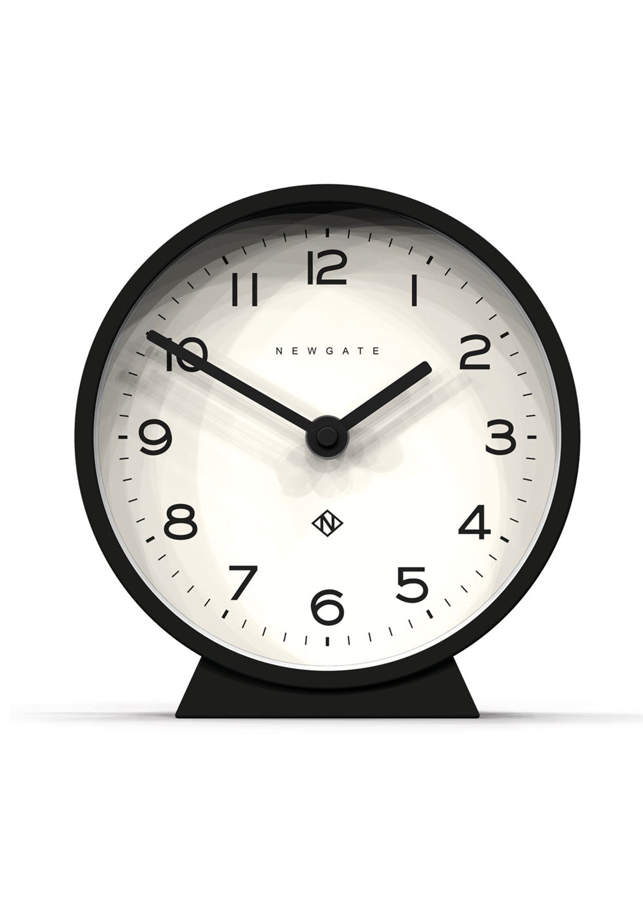 Newgate M Mantel Clock Cave Black A contemporary black mantel or desk clock with a minimalist dial. Known as silent sweep in the industry, the hands move in a constant sweeping motion rather than a stepped tick. So you won't hear any ticking but if your hearing is particularly sensitive in a completely silent room you may hear a very quiet whirring. - Material: Acrylic, Paper, Metal Hands, Glass- Colour: Black- Movement: Quartz 'Silent Sweep'- Power: 1 x AA (not included)- Dimensions: LWH 6 x 16 x 17cm- Weight: 0.27kg