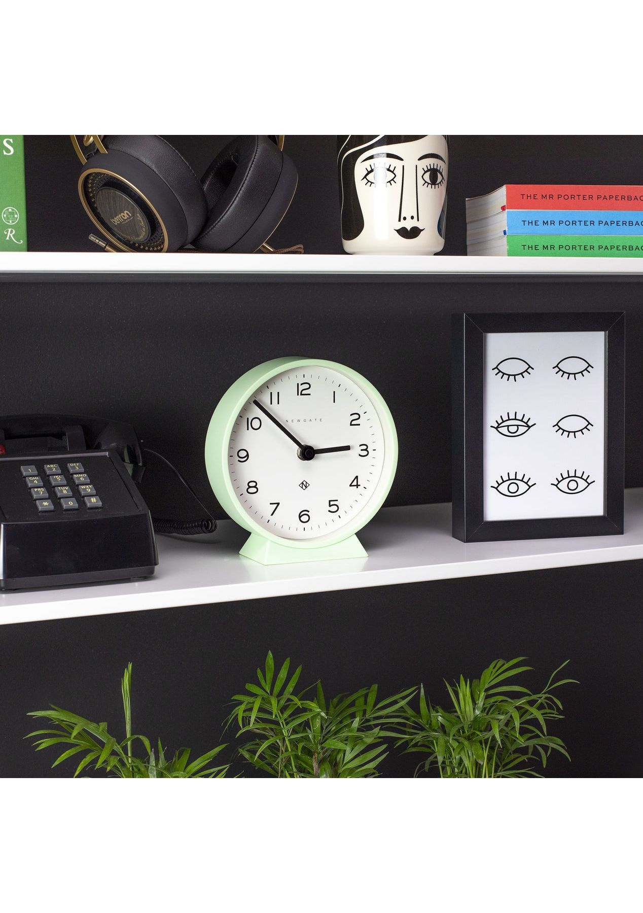 Newgate M Mantel Clock Neo Mint A modern mantel clock with a colourful bright Neo Mint silicone finish. Known as silent sweep in the industry, the hands move in a constant sweeping motion rather than a stepped tick. So you won't hear any ticking but if your hearing is particularly sensitive in a completely silent room you may hear a very quiet whirring. - Material: Acrylic, Paper, Metal Hands, Glass- Colour: Neo Mint- Movement: Quartz 'Silent Sweep'- Power: 1 x AA (not included)- Dimensions: LWH 6 x 16 x 17cm- Weight: 0.27kg