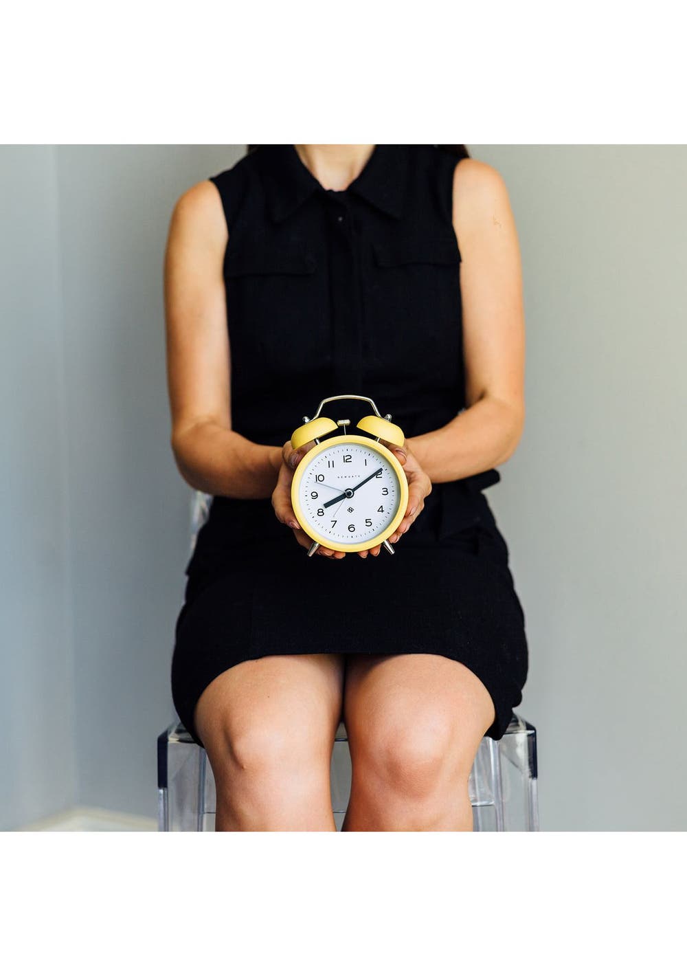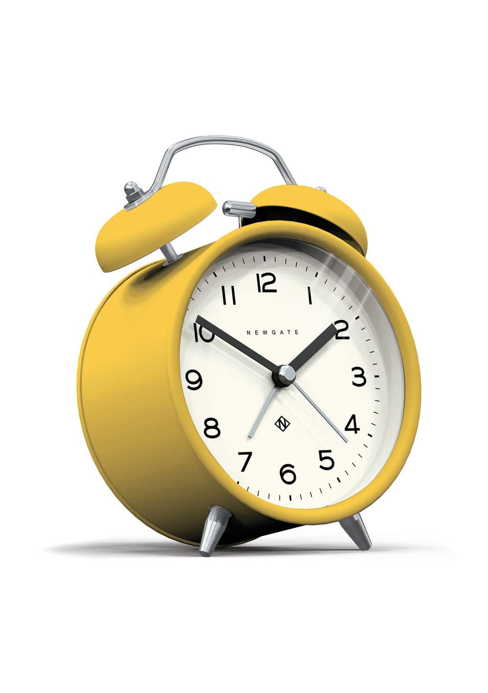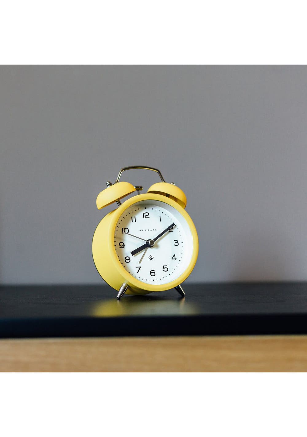 Newgate Charlie Bell Echo Matte Cheeky Yellow A colourful modern alarm clock with a matt-finish yellow case, contemporary graphic dial and a moving hammer and twin-bell alarm. Known as silent sweep in the industry, the hands move in a constant sweeping motion rather than a stepped tick. So, you won't hear any ticking but if your hearing is particularly sensitive in a completely silent room you may hear a very quiet whirring. - Material: Metal, Acrylic, Paper, Glass- Colour: Yellow- Movement: Quartz- Power: 1 x AA (not included)- Dimensions: LWH 5.5 x 9.8 x 13.5cm- Weight: 0.22kg