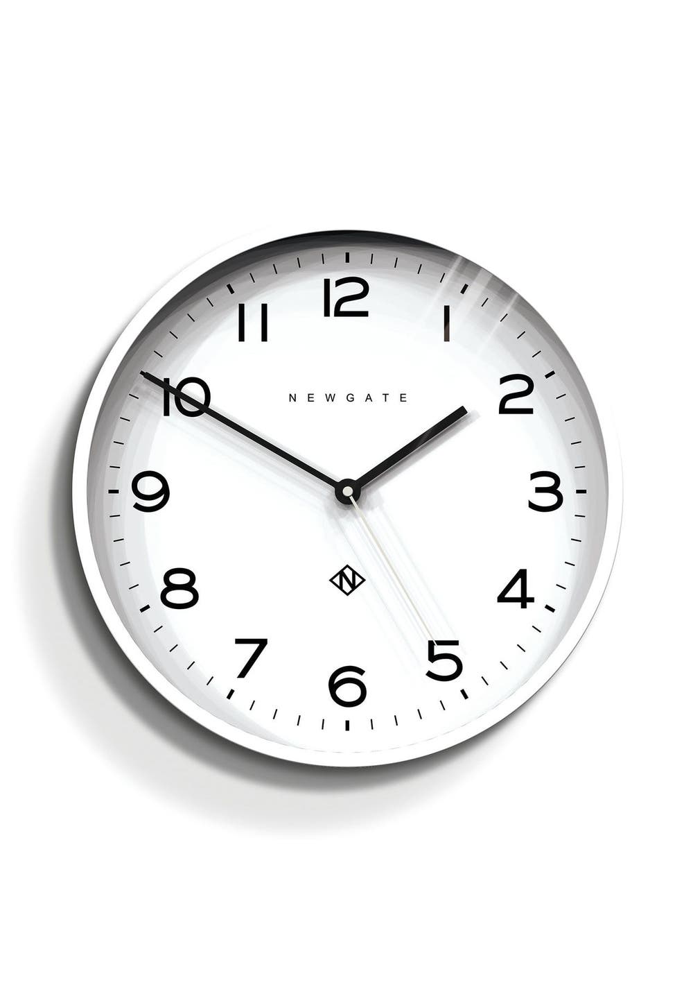 Newgate Number Three Echo Clock Silicone White A modern white wall clock with a minimalist graphic dial and a contemporary straight-cut case. - Material: Acrylic, Metal Hands, Glass- Colour: White- Movement: Quartz. This is a ticking clock.- Power: 1 x AA (not included)- Dimensions: LWH 4.5 x 37.5 x 37.5cm; 1.03kg