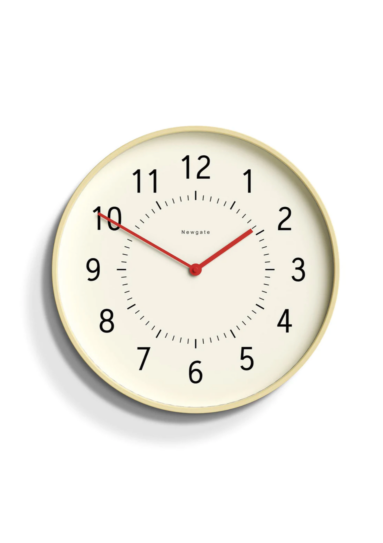 Newgate Monopoly Plywood Wall Clock With Red Hands A Scandi wall clock with a modern pale plywood case and a minimalist graphic dial, with colourful red hands. Ideal within a contemporary interior this large wood wall clock creates a modern focal point in the kitchen, living room or office. Please note, this clock is made from real wood so there may be slight variations in the colour and grain as well as some natural wood knots, lines and joins. - Material: Plywood, Acrylic, Paper, Metal hands, Glass- Colour: Plywood w/ Red Hands - Movement: Quartz 'Silent Sweep'- Power: 1 x AA (not included)- Dimensions: LWH 4.5 x 40.5 x 40.5cm- Weight: 1.28kg