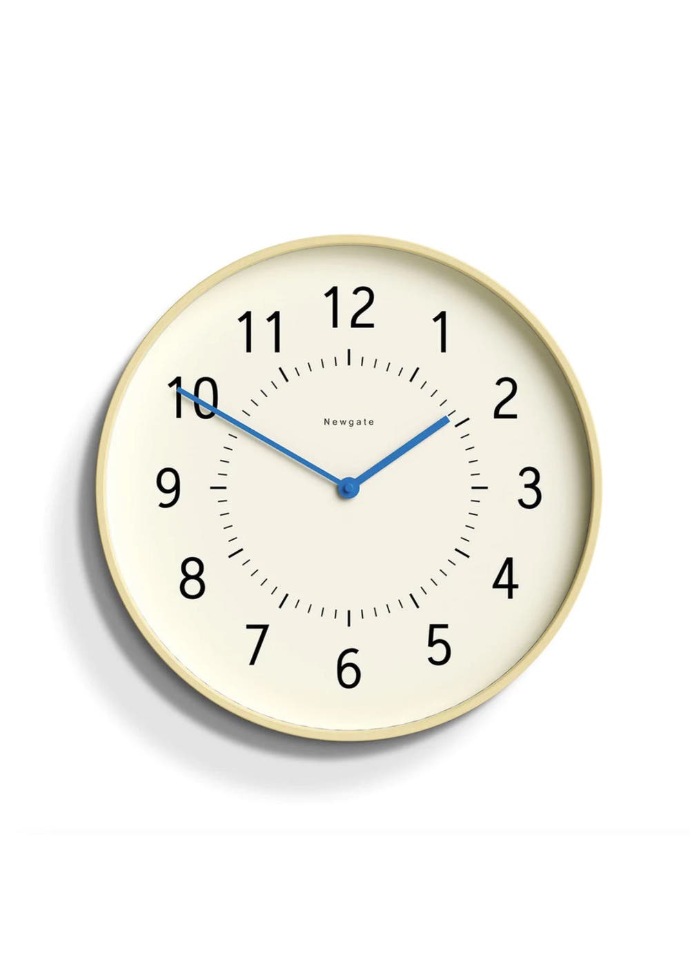 Newgate Monopoly Plywood Wall Clock With Blue Hands A Scandi wall clock with a modern pale plywood case and a minimalist graphic dial, with colourful blue hands. Ideal within a contemporary interior this large wood wall clock creates a modern focal point in the kitchen, living room or office. Please note, this clock is made from real wood so there may be slight variations in the colour and grain as well as some natural wood knots, lines and joins. - Material: Plywood, Acrylic, Paper, Metal hands, Glass- Colour: Plywood w/ Blue Hands- Movement: Quartz 'Silent Sweep'- Power: 1 x AA (not included)- Dimensions: LWH 4.5 x 40.5 x 40.5cm- Weight: 1.28kg