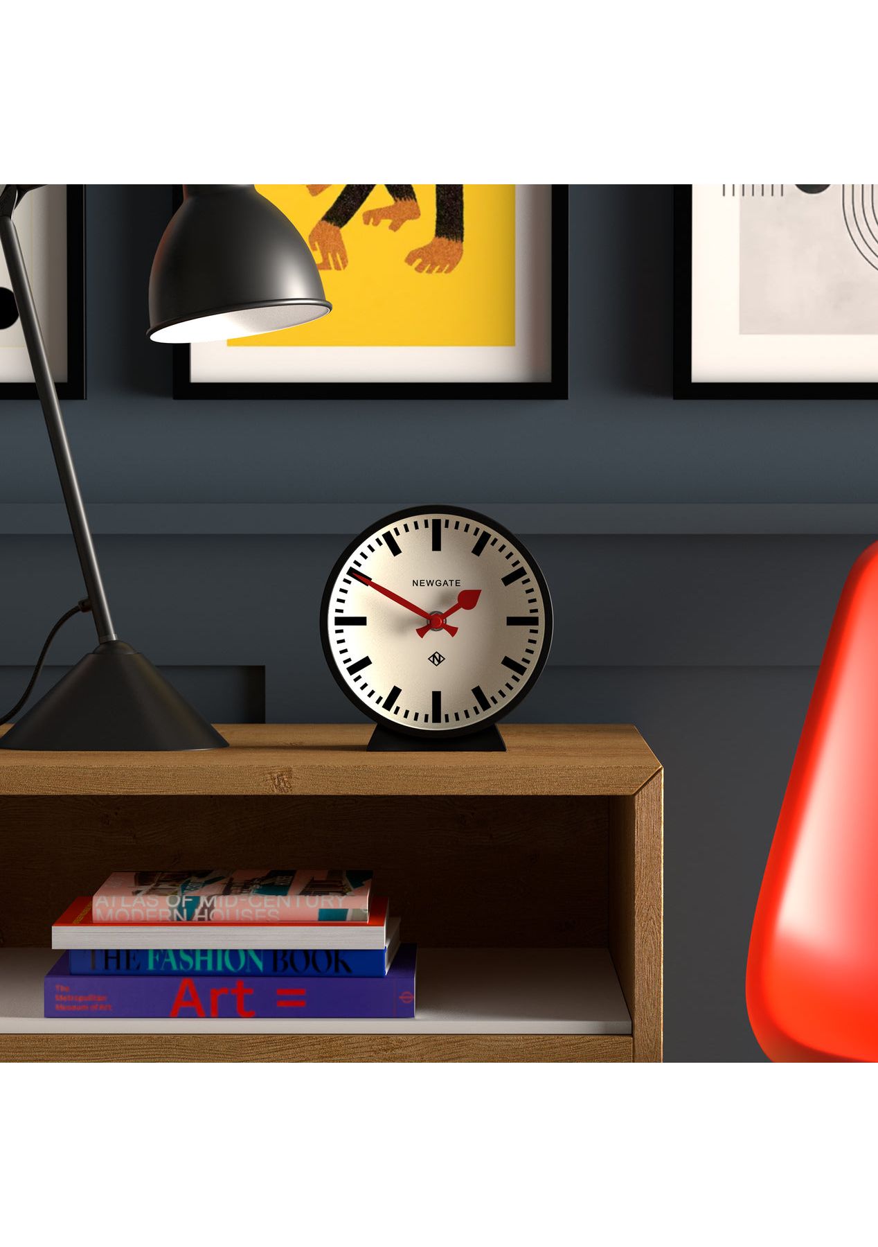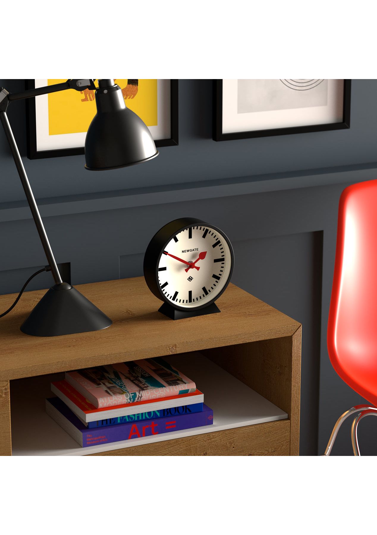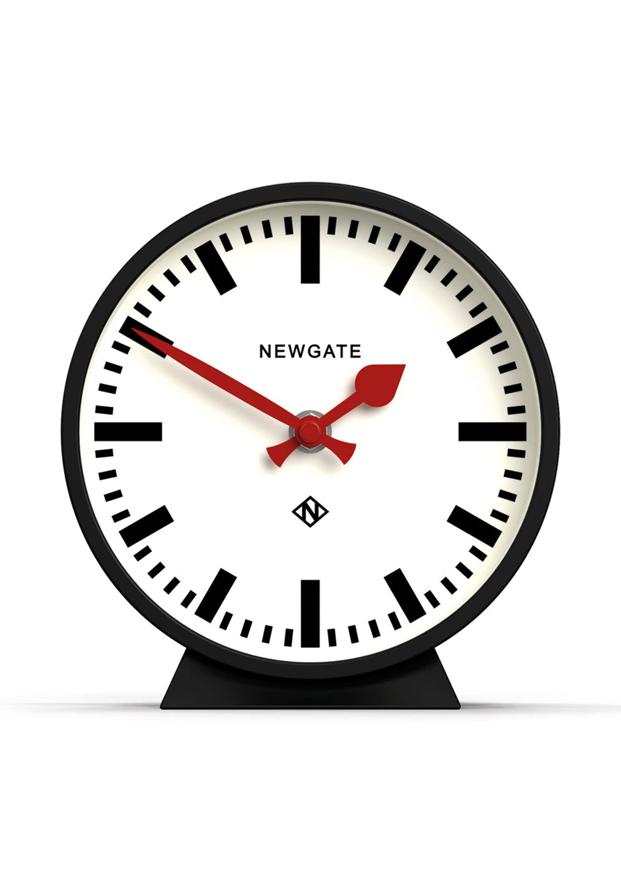 Newgate Railway Mantel Clock Cave Black A station style mantel clock with a bold marker dial, red spade and baton hands in a matt black finish. Known as silent sweep in the industry, the hands move in a constant sweeping motion rather than a stepped tick. So you won't hear any ticking but if your hearing is particularly sensitive in a completely silent room you may hear a very quiet whirring. - Material: Acrylic, Metal, Glass- Colour: Black- Movement: Quartz 'Silent Sweep'- Power: 1 x AA (not included)- Dimensions: LWH 6 x 16 x 17cm; 0.27kg