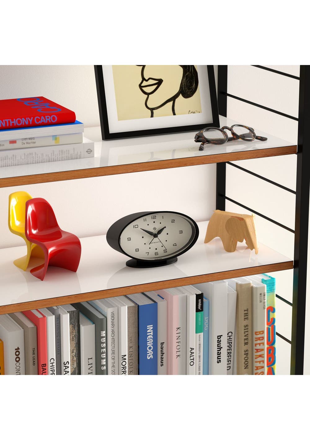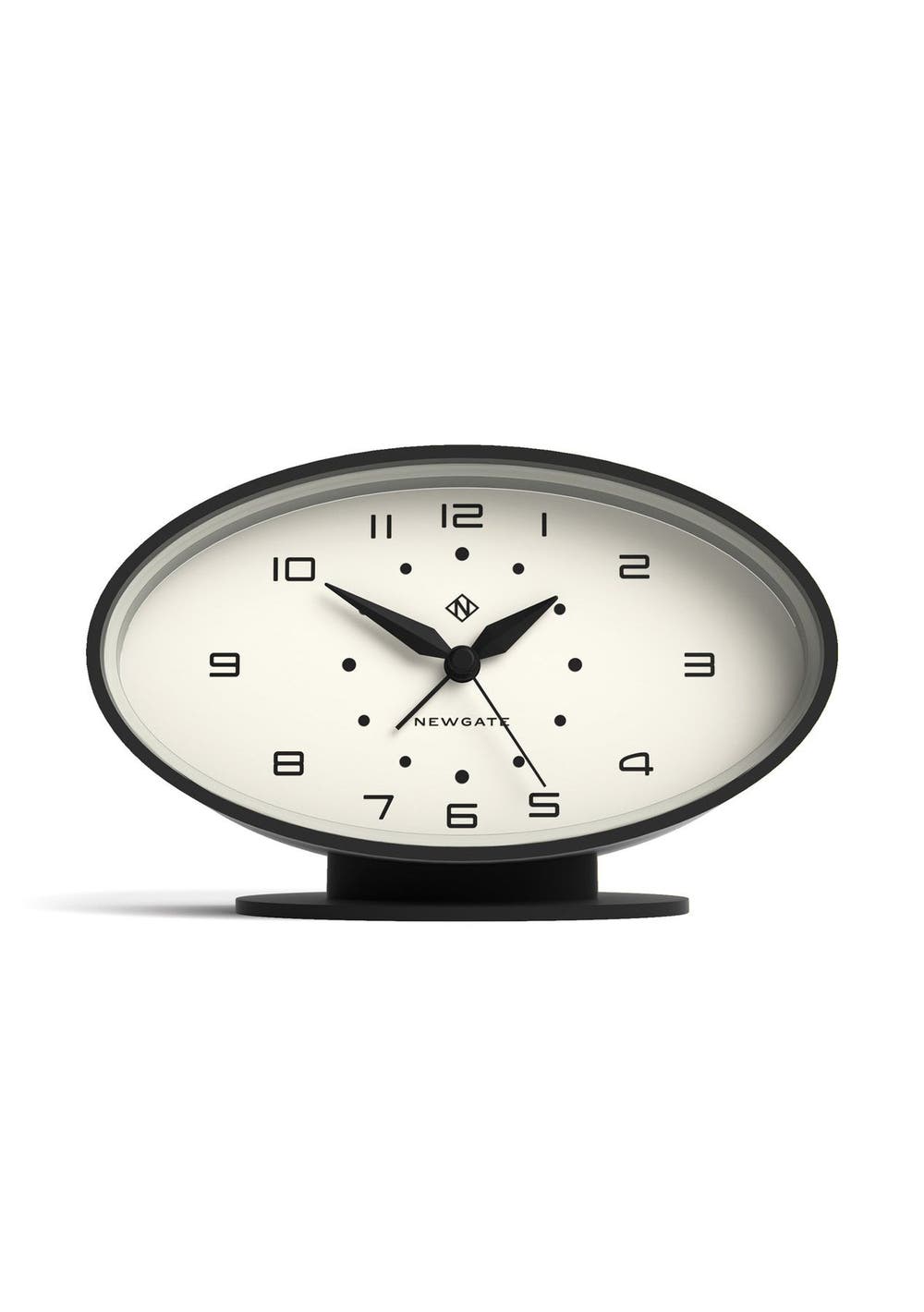 Newgate Ronnie Alarm Clock Black An acrylic, modern, oval-shaped alarm clock with a retro feel and clean Arabic dial, The Ronnie, a unique shape is perfectly complemented with a matt finish and acrylic lens.Known as ‚silent sweep‚ in the industry, the hands move in a constant sweeping motion rather than a stepped tick. So you won‚t hear any ticking but if your hearing is particularly sensitive in a completely silent room you may hear a very quiet whirring. - Dimensions: HWD 10 x 16 x 8cm; 0.2kg- Materials: Acrylic, Metal Hands, Acrylic- Colour: Black- Movement: Quartz ‚Silent-Sweep‚ - Power: Requires 1 x high quality branded alkaline AA battery (not included)