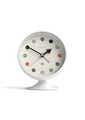 Newgate Spheric Alarm Clock White Mid-Century Alarm/Desk Clock | Silent 'No Tick' | Matt Pebble Whi statement 1970's style spherical alarm clock with a tilted Arabic dot dial and metal pointer hands. The acrylic clock and stand has a matt finish, with an acrylic lens, and a digital alarm sound.Known as ‚silent sweep‚ in the industry, the hands move in a constant sweeping motion rather than a stepped tick. So you won‚t hear any ticking but if your hearing is particularly sensitive in a completely silent room you may hear a very quiet whirring.- Size: HWD 14 x 11.5 x 9cm; 0.16kg- Materials: Acrylic, Metal Hands, Acrylic- Colour: White- Movement: Quartz ‚Silent Sweep‚- Power: Requires 1 x high-quality branded alkaline AA battery (not included)