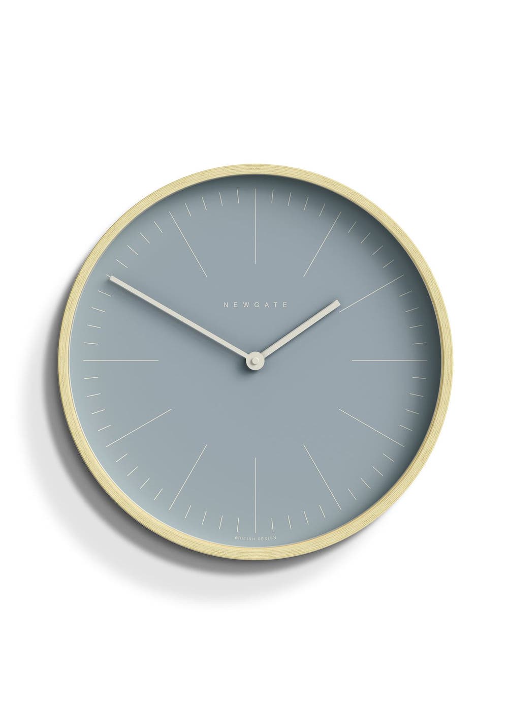 Newgate Mr Clarke Clock Pale Wood Pill Blue Dial 128 A modern Scandinavian-inspired wall clock with a pale plywood case and a contemporary ‚Pill Blue‚ face with a minimalist marker dial.Available in a range of muted colour-block options, the Mr Clarke collection creates a contemporary focal point in the kitchen, living room or office.Please note, this clock is made from real wood so there may be slight variations in the colour and grain as well as some natural wood knots, lines and joins. Known as silent sweep, this clock has no tick, but faint whir when in a silent room such as a bedroom. - Dimensions: HWD 40 x 40 x 4.5cm; 1.28kg- Materials: Pale plywood case, metal hands and glass lens- Colour: Pale plywood and Pill blue dial- Movement: Quartz ‚Silent Sweep‚ - Power: Requires 1 x high quality branded alkaline AA battery (not included)