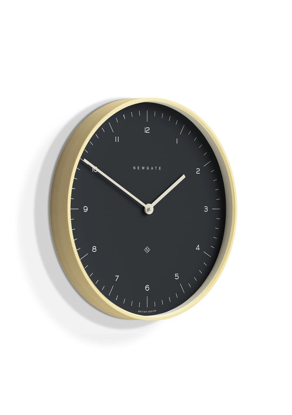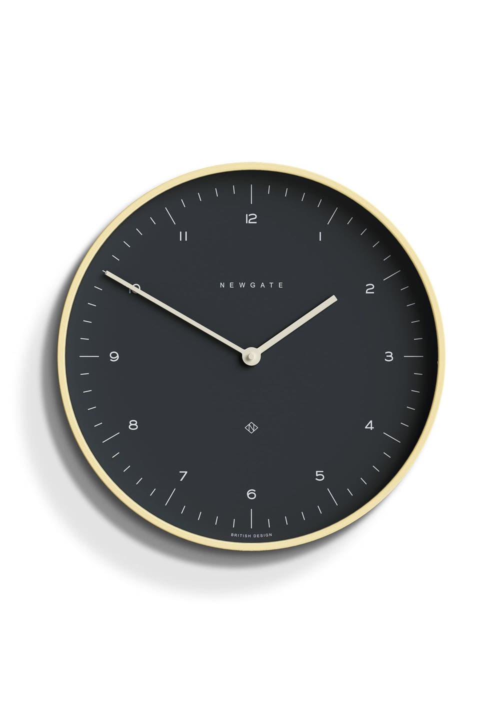 Newgate Mr Clarke Clock Pale Wood Oil Grey Dial A modern Scandinavian-inspired wall clock with a large plywood case and a contemporary dark ‚Oil Grey‚ dial with minimalist graphic numerals.Available in a range of muted colour-block options, the Mr Clarke wall clock collection creates a contemporary focal point in the kitchen, living room or office.Please note, this clock is made from real wood so there may be slight variations in the colour and grain as well as some natural wood knots, lines and joins. A faint tick can be heard in a totally silent environment such as a bedroom. - Size: HWD 41 x 41 x 4.5cm; 1.28kg- Materials: Pale plywood, metal, glass- Colour: Pale plywood w/ Oil Grey Dial- Movement: Quartz. This is a faint ticking clock.- Power: Requires 1 x high quality branded alkaline AA battery (not included)