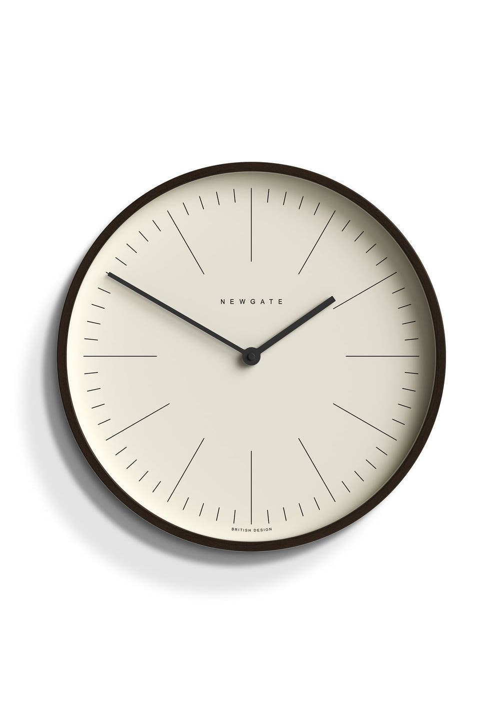 Newgate Mr Clarke Clock Dark Wood Marker Dial 28 A small dark plywood wall clock with a minimalist marker dial.Ideal within a contemporary or mid-Century modern interior, this small wall clock creates a space-saving focal point in a compact kitchen, living room or office.Please note, this clock is made from real wood so there may be slight variations in the colour and grain as well as some natural wood knots, lines and joins. A faint tick can be heard in a totally silent environment such as a bedroom. - Dimensions: HWD 28 x 28 x 4.5cm; 0.6kg- Materials: Dark Wood, Metal, Glass- Colour: Dark Wood- Movement: Quartz. This is faint ticking clock.- Power: Requires 1 x high-quality branded alkaline AA battery (not included)