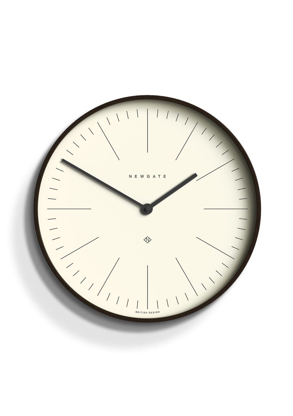 Newgate Mr Clarke Clock Dark Wood Marker Dial A Scandi wall clock with a modern dark plywood case and a minimalist marker dial. Ideal within a contemporary interior this large wood wall clock creates a modern focal point in the kitchen, living room or office.Please note, this clock is made from real wood so there may be slight variations in the colour and grain as well as some natural wood knots, lines and joins. - Dimensions: HWD 40.5 x 40.5 x 4.5cm; 1.28kg- Materials: Dark plywood, Metal, Glass- Colour: Dark plywood- Movement: Quartz. This is a faint ticking clock.- Power: Requires 1 x high-quality branded alkaline AA battery (not included)