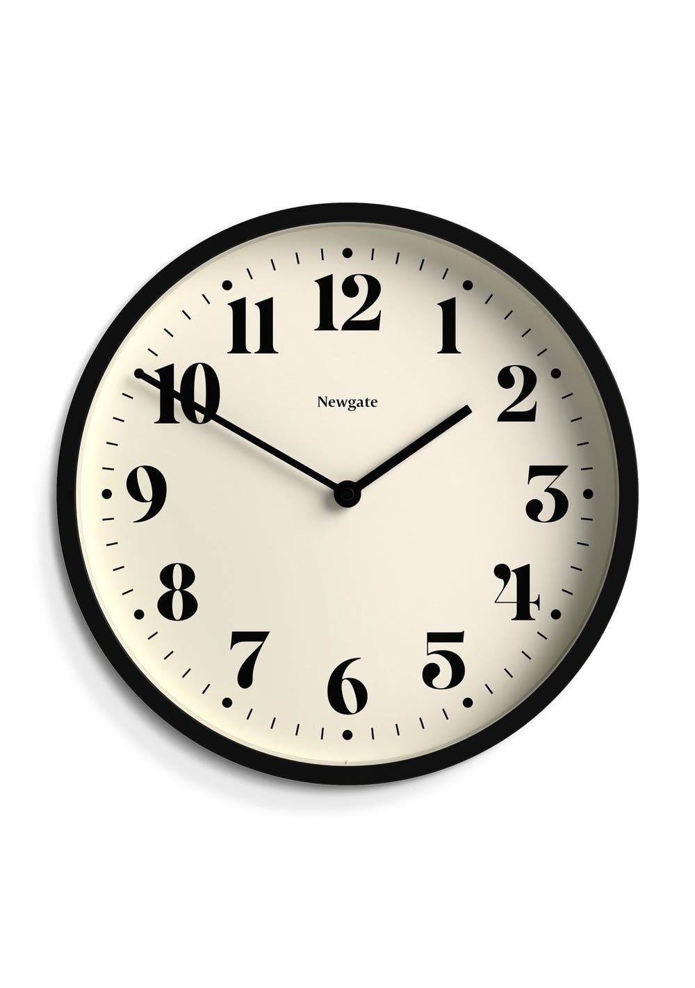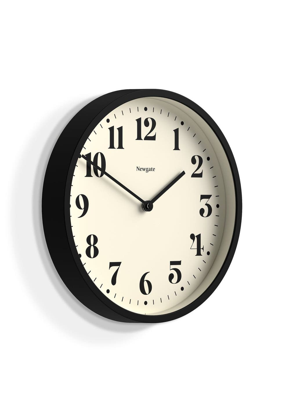 Newgate Number Four Wall Clock Matte Black A modern black wall clock with a contemporary theatre dial and matt black painted case.The Number Four wall clock is available in six finishes including our matt black option. Want something larger? Check out our Number Two wall clock in two monochrome finishes. Suitable in any space from the kitchen and office to the modern bedroom. - Dimensions: HWD 30 x 30 x 4.3cm; 0.6kg- Materials: Acrylic case, metal hands and glass lens- Colour: Matte black- Movement: Quartz. This is a ticking clock. - Power: Requires 1 x high quality branded alkaline AA battery (not included)