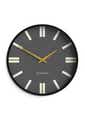 Newgate Universal Wall Clock Plaza Dial Black A large black wall clock with a bold grey marker dial, contrasting gold hands and a deep straight-cut metal case.Equally at home in an industrial, retro or minimalist interior, the Universal wall clock creates a focal point as a statement kitchen clock or hung in the living room or office. - Dimensions: HWD 43 x 43 x 7.5cm - Materials: Metal case, metal hands and glass lens- Colour: Matt black, grey dial- Movement: Quartz ‚Silent Sweep‚- Power: Requires 1 x high quality branded alkaline AA battery (not included)