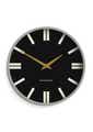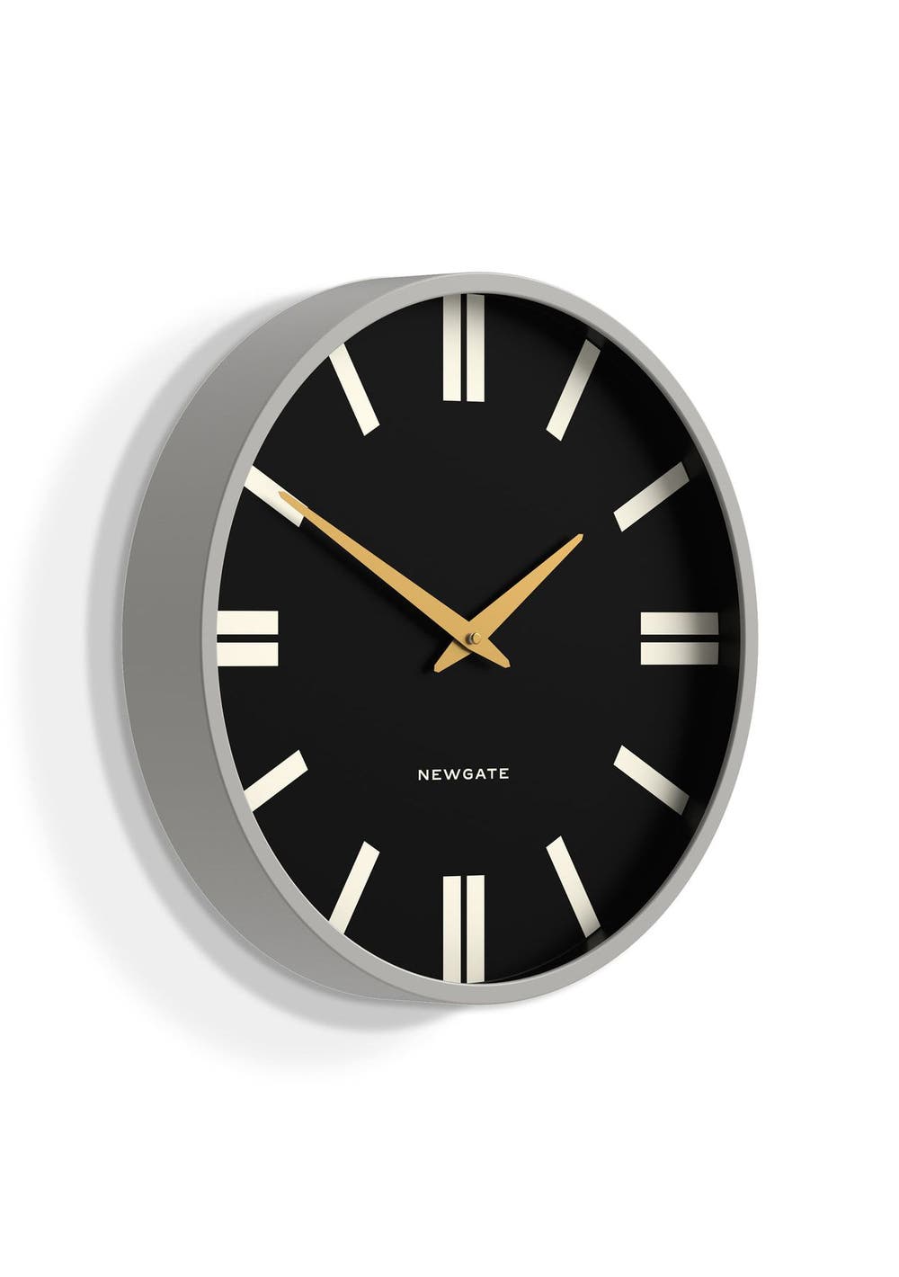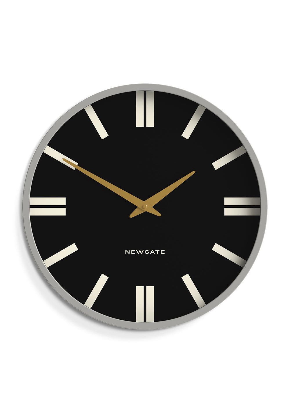 Newgate Universal Wall Clock Plaza Dial Grey A large grey wall clock with a bold black marker dial, contrasting gold hands and a deep straight-cut metal case.Equally at home in an industrial, retro or minimalist interior, the Plaza wall clock creates a focal point as a statement kitchen clock, or hung in the living room or office. - Size: HWD 43 x 43 x 7.5cm; 1.4kg- Materials: Metal case, metal hands and glass lens- Colour: Overcoat Grey, Black dial- Movement: Quartz ‚Silent Sweep‚- Power: Requires 1 x high quality branded alkaline AA battery (not included)