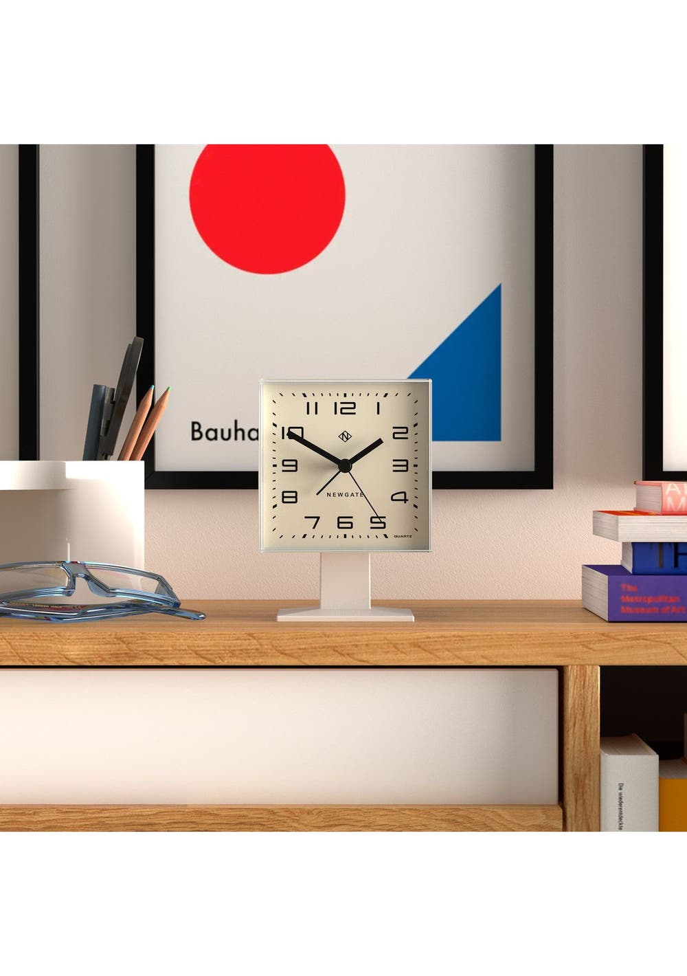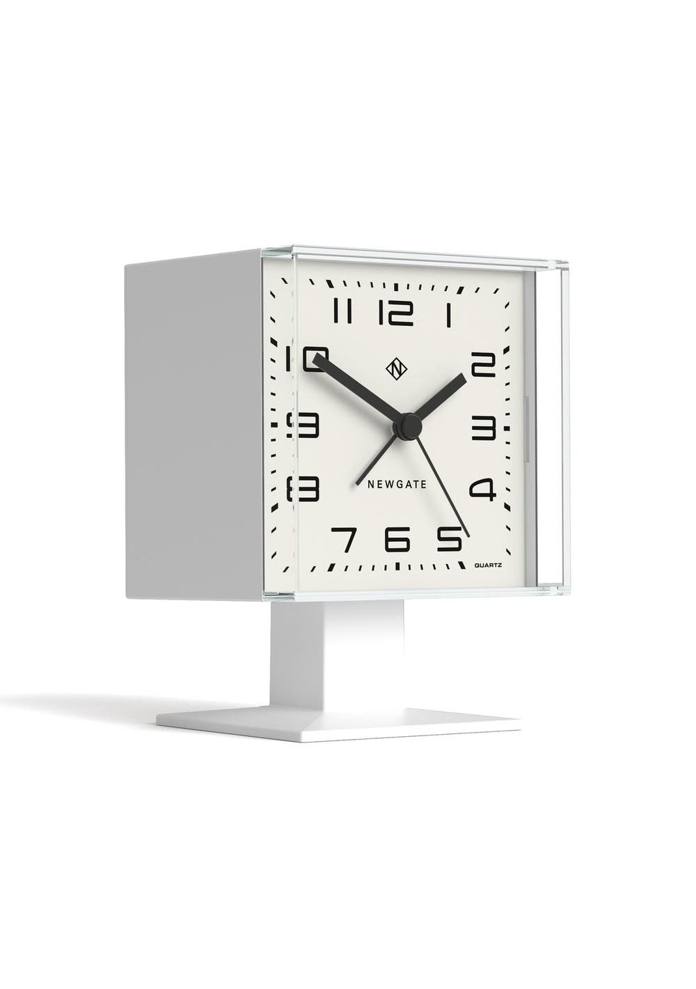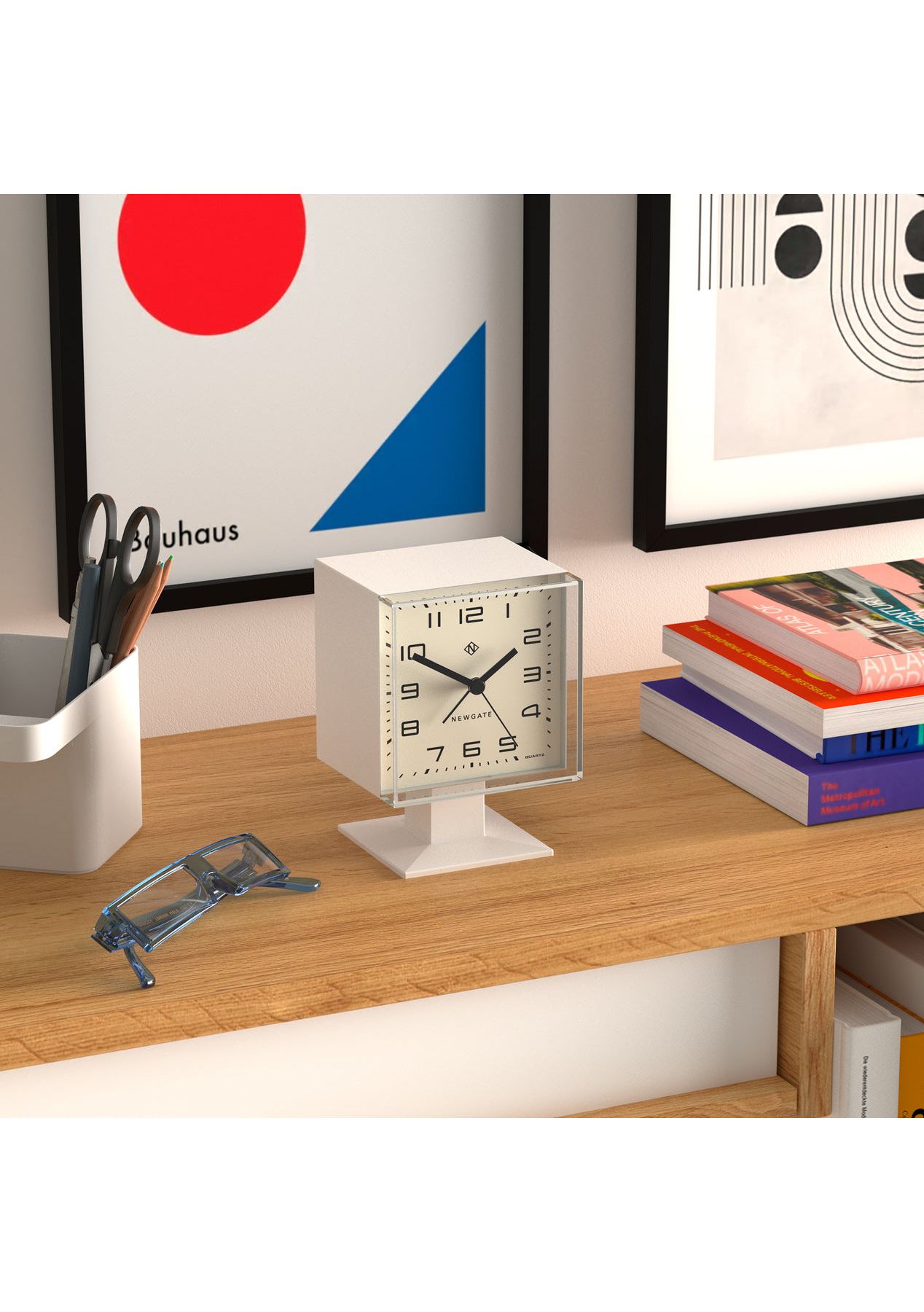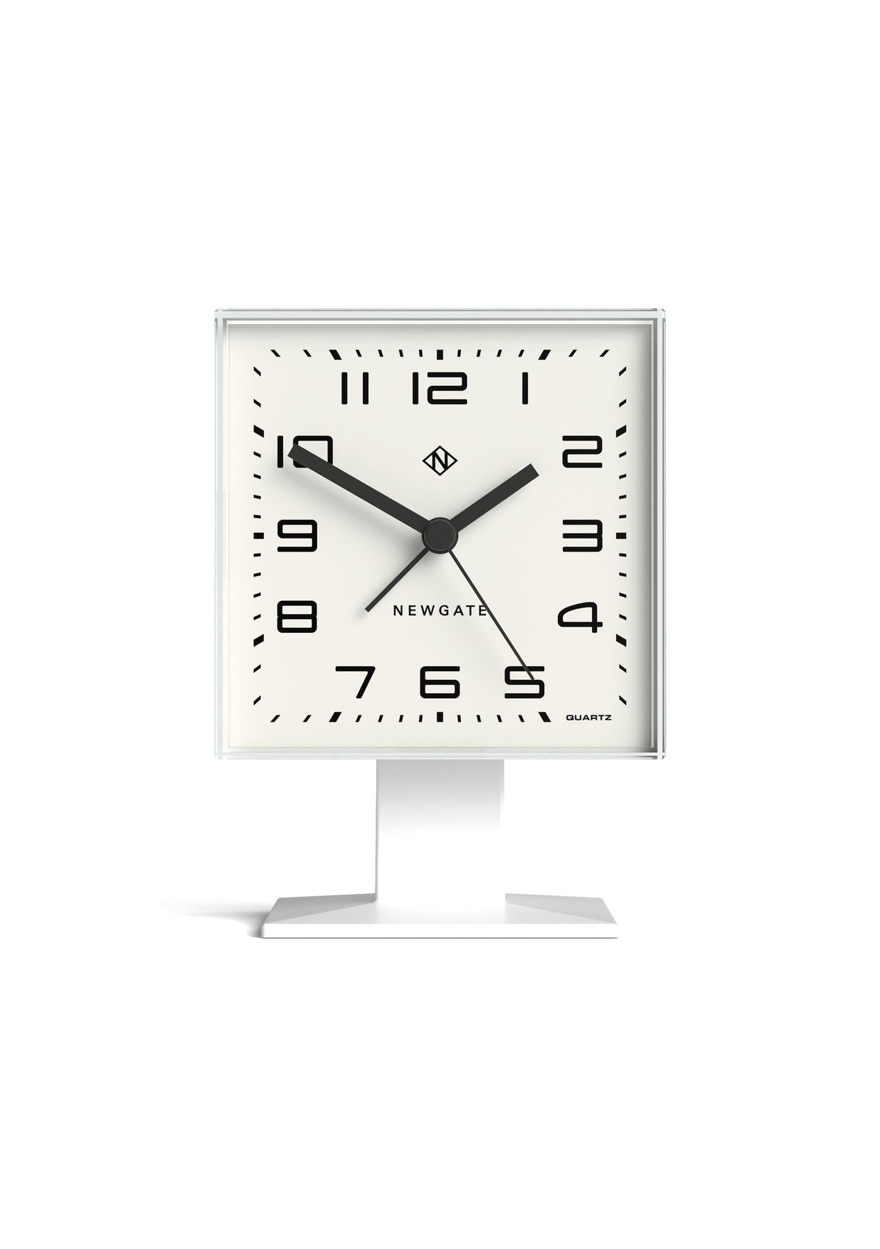 Newgate Victor Alarm Clock Pebble White An acrylic modern retro-inspired alarm clock with an Arabic dial and deep acrylic lens. The square case has a matt finish and sits on a square podium, making this unique Newgate-designed alarm clock a great addition to your desk, shelf or bedside.Known as ‚silent sweep‚ in the industry, the hands move in a constant sweeping motion rather than a stepped tick. So you won‚t hear any ticking but if your hearing is particularly sensitive in a completely silent room you may hear a very quiet whirring. - Size: HWD 14 x 10 x 9cm; 1.67kg- Materials: Acrylic case with a matt painted finish, metal hands and a 3D acrylic lens.- Colour: Pebble White- Movement: Quartz ‚Silent Sweep‚- Power: Requires 1 x high quality branded alkaline AA battery (not included)