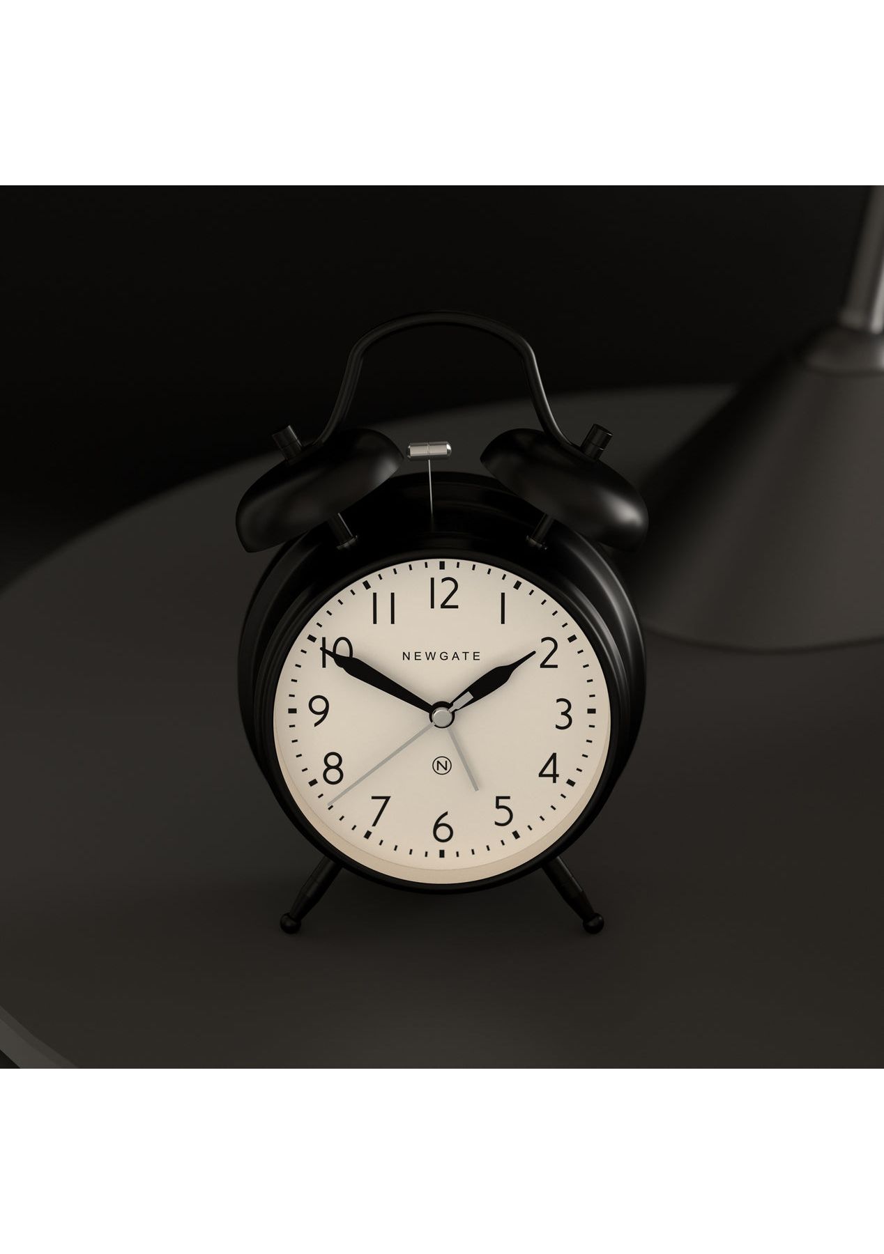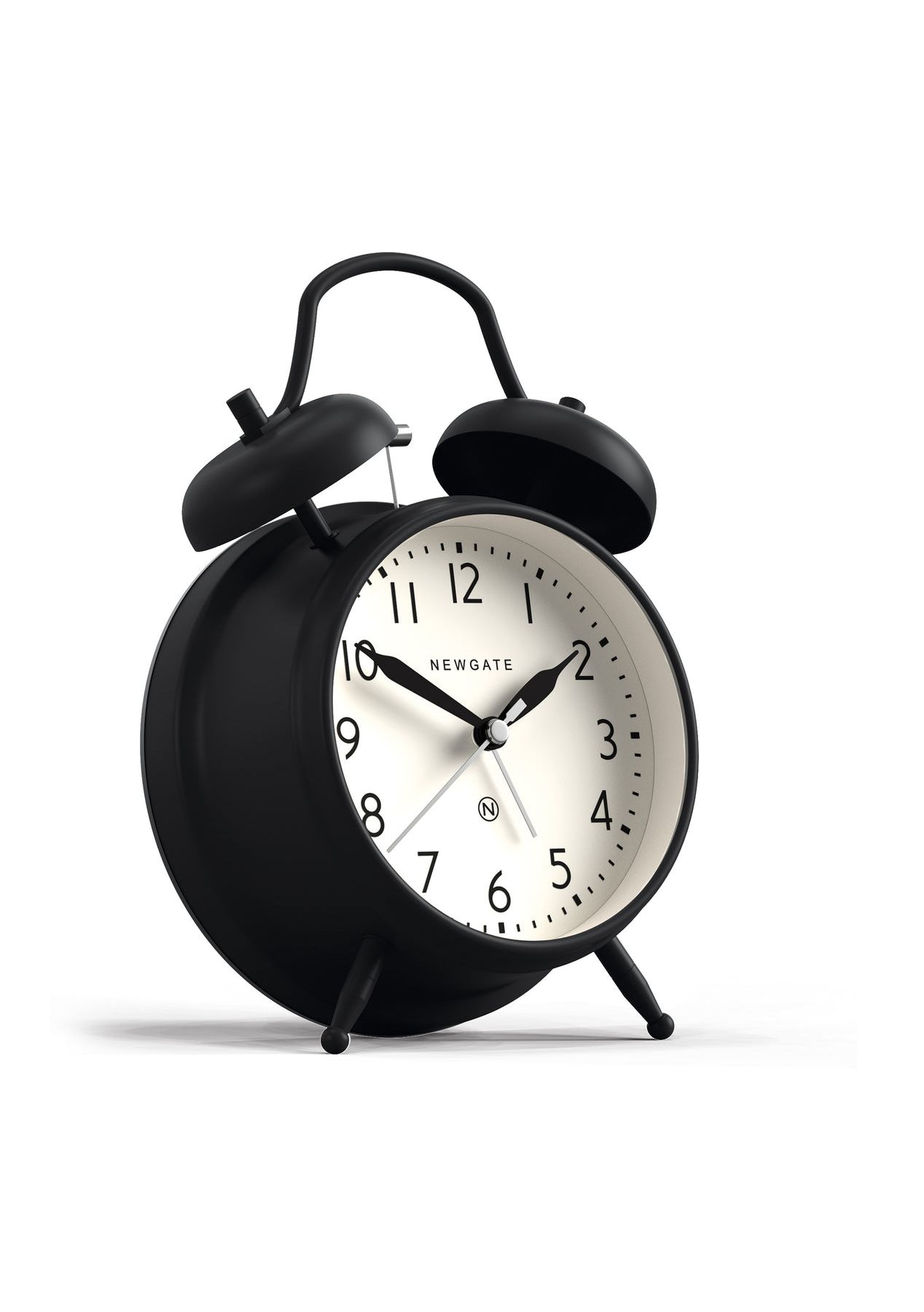 Newgate New Covent Garden Alarm Matte Black Our iconic twin-bell alarm clock in classic matt black. This classic-style metal alarm clock has a contemporary dial and real moving hammer-and-bell action for a traditional wake-me-up. Known as 'silent sweep' in the industry, you may hear a faint whir in a totally silent room. - Dimensions: HWD 17 x 11.7 x 5.5cm; 0.27kg- Materials: Metal case, metal hands and glass lens- Colour: Matte Black- Movement: Quartz 'Silent Sweep'- Power: Requires 1 x high quality branded alkaline AA battery (not included)