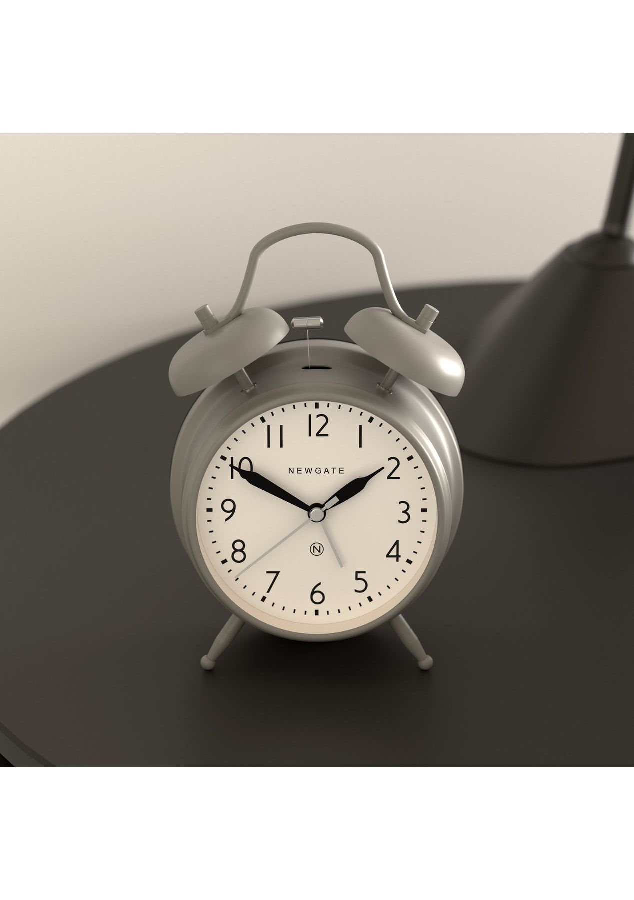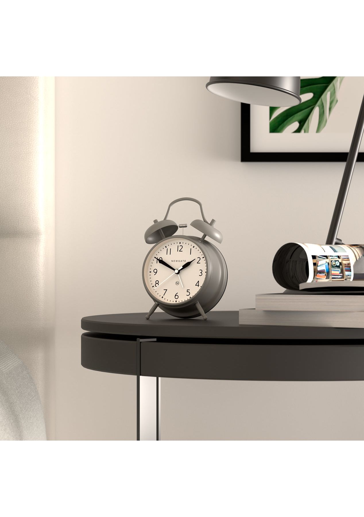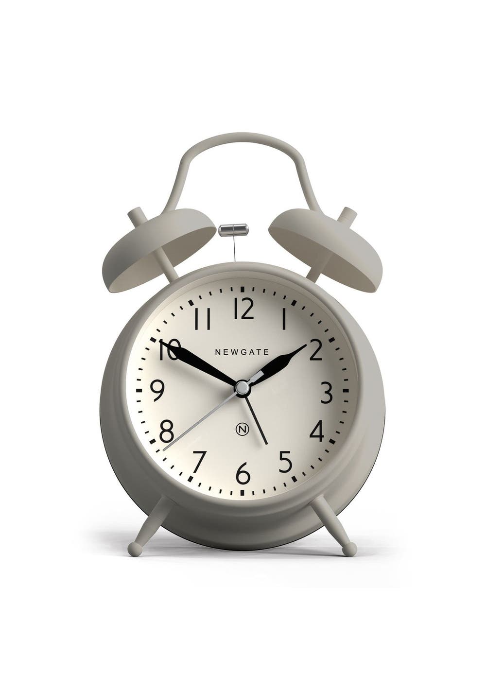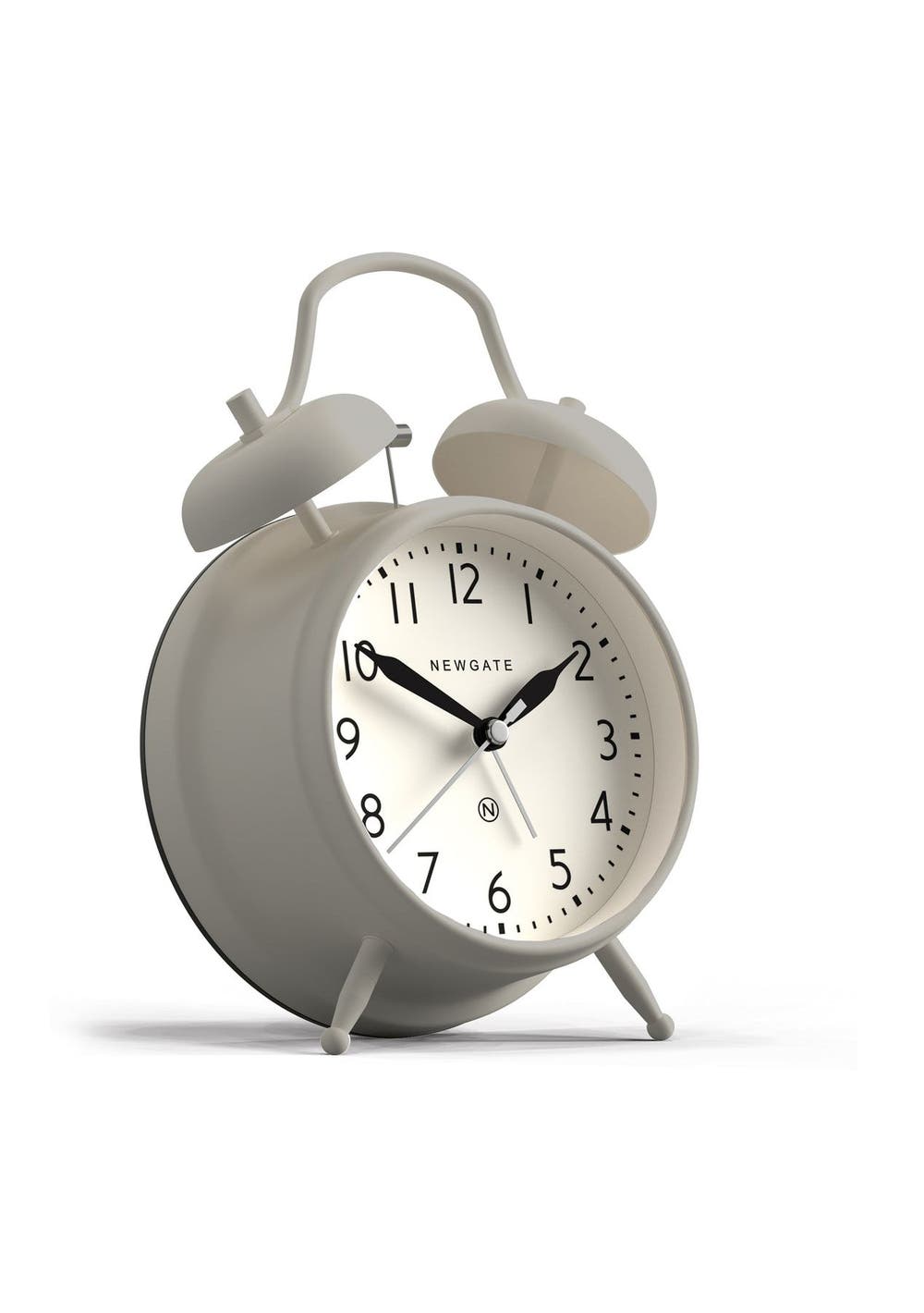 Newgate New Covent Garden Alarm Overcoat Grey Our iconic twin-bell alarm clock in classic 'Overcoat' grey. This large metal alarm clock has a contemporary dial and real moving hammer-and-bell action for a traditional wake-me-up. Known as 'silent sweep' in the industry, this clock has a faint whir when in a totally silent room. - Dimensions: HWD 17 x 11.7 x 5.5cm; 0.27kg- Materials: Metal case, metal hands and glass lens- Colour: Overcoat Grey- Movement: Quartz 'Silent Sweep'- Power: Requires 1 x high quality branded alkaline AA battery (not included)