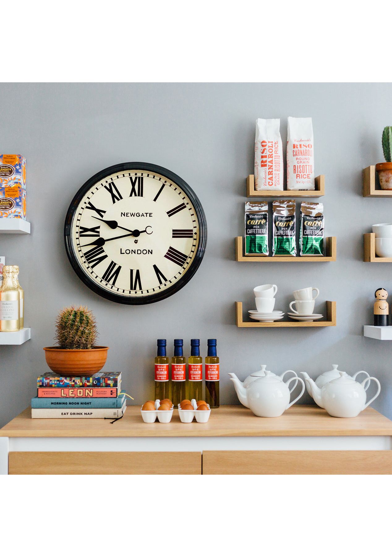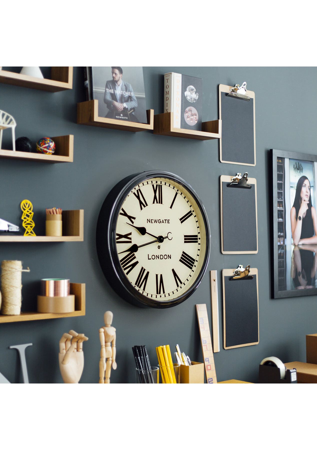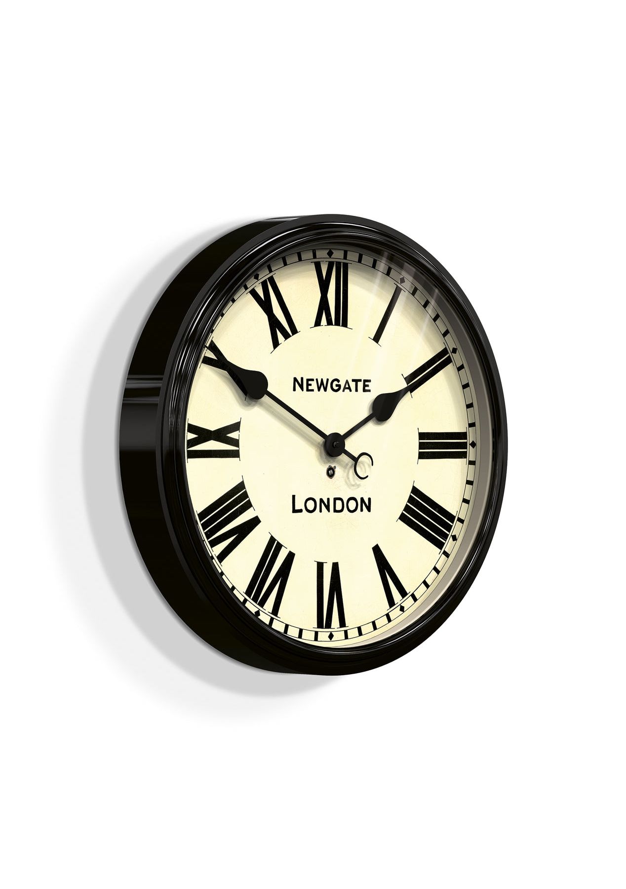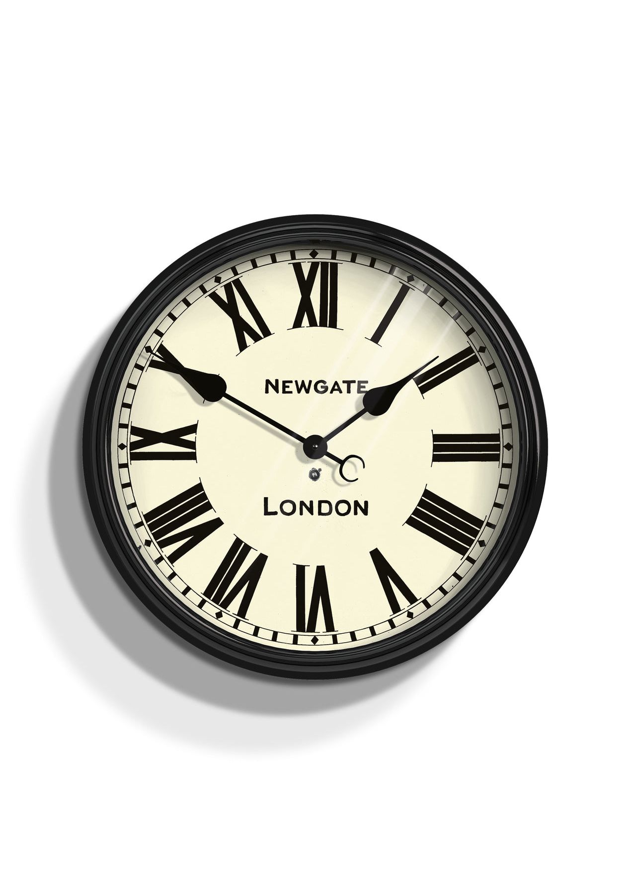 Newgate Battersby Clock Black - Black Roman Numeral Wall Clock | Classic Station Clock. A large railway station wall clock with a classic Roman numeral dial and gloss black metal case.This traditional railway station clock is a timeless classic that makes a handsome addition to the interior. - Size: HWD 50 x 50 x 8cm- Materials: Metal case in a gloss finish, metal hands and glass lens- Colour: Gloss black- Movement: Quartz. This is a ticking clock. - Power: Requires 1 x high-quality branded alkaline AA battery (not included)