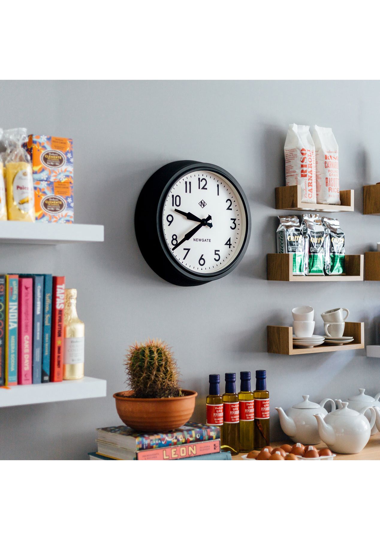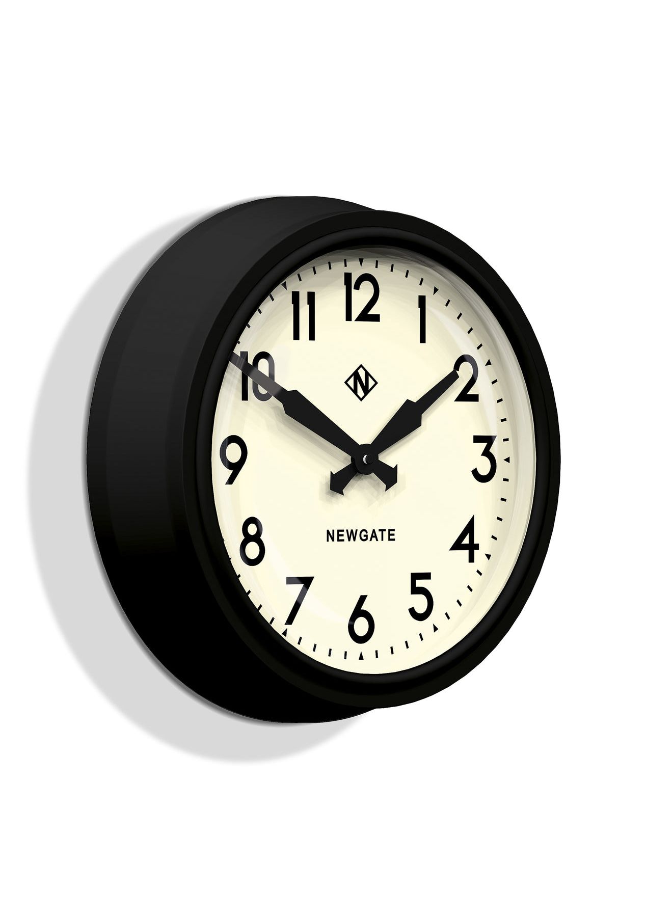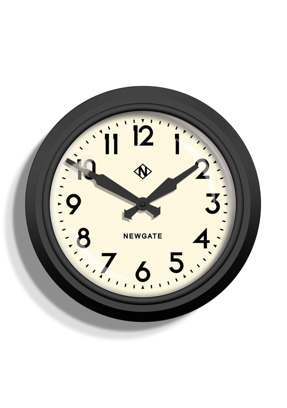 Newgate 50S Electric Clock Black Black Station Wall Clock | Retro Mid-CenturyThis iconic railway station wall clock combines mid-Century style with contemporary design. A matt black case holds a bold monochrome dial and retro propeller hands.Our iconic Electric wall clock is inspired by the large-scale clocks that hung in factory buildings during the 1940's and 1950's. This updated design translates the original retro mid-Century design into a modern and compact timepiece ideal for the interior. - Material: Acrylic, Paper, Metal Hands, Glass- Colour: Black- Movement: Quartz "This is a Ticking Clock"- Power: 1 x AA Battery Required (Not Included)- Dimensions: LWH - Weight: