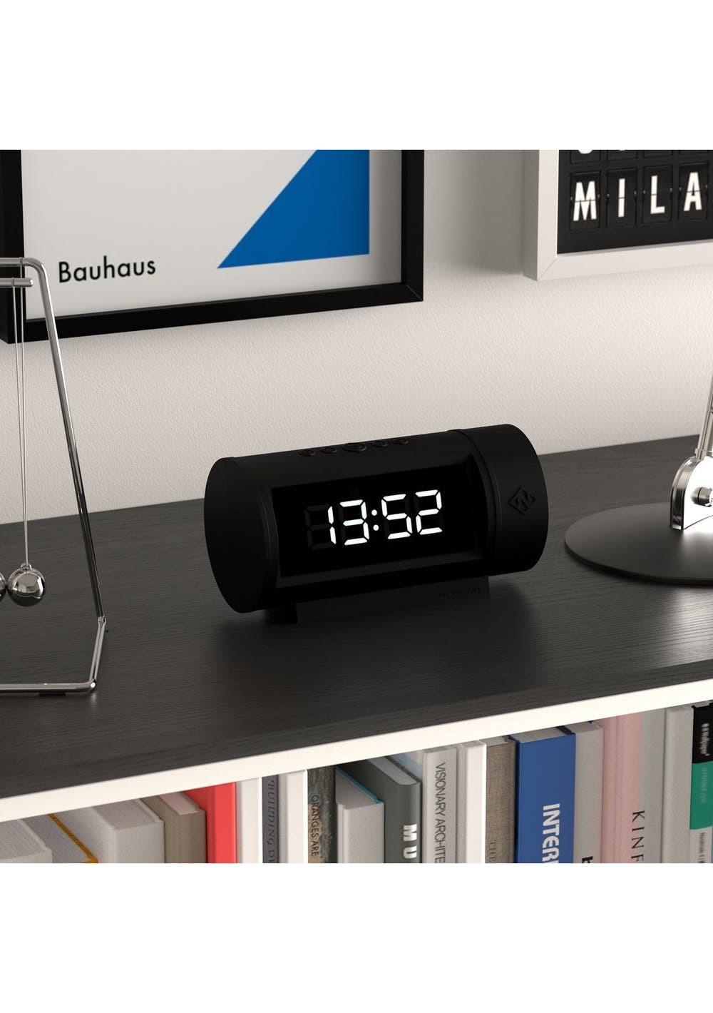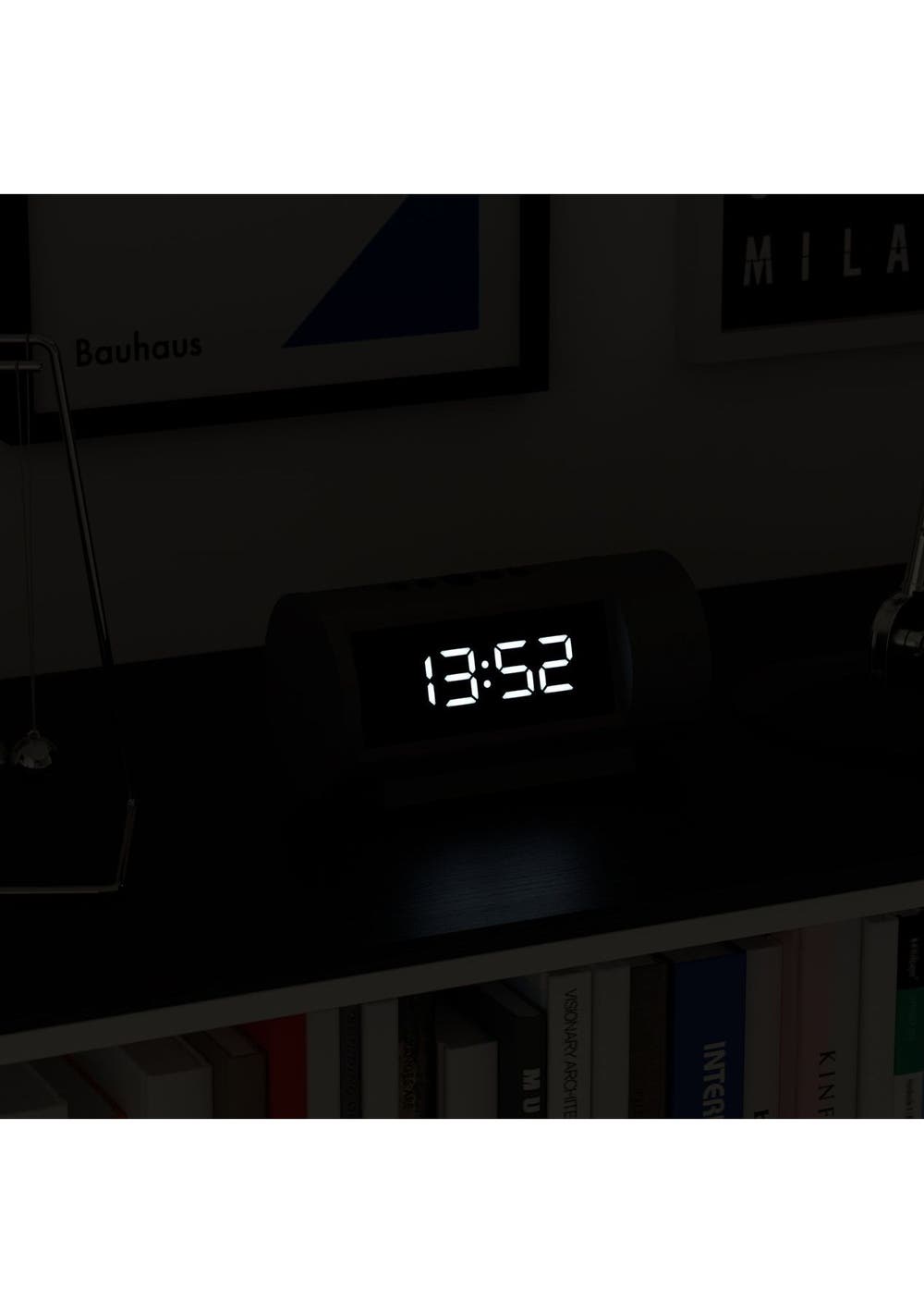 Newgate Pil Led Alarm Clock Black Tubular, white retro LED alarm clock with a cut-out black screen that provides the perfect modern bedside or desk accessory.The unique Pil alarm clock design incorporates a 12 or 24-hour time display, a digital alarm and snooze function, and a temperature display.The screen will be dimmer when running on batteries alone, but bright when you hit the button on top, unless you have the USB cable connected in which case the screen will be really bright. The display will only be backlit continuously when connected to a power source with the included USB cable or a DC adaptor (not included). 3 x AAA batteries (not included) are required to retain time and alarm settings- 12 or 24-hour format- LED screen- Alarm and snooze function- Temperature display 0-50°C- Night screen brightness setting- USB power cable included- Size: HWD 9 x 17.5 x 8.5 cm / 3.5 x 6.9 x 3.3in - Materials: Acrylic case, Black LED screen- Colour: Black/Black- Movement: Digital- Power: 1x USB cable included, 3 x high-quality branded AAA batteries (not included)