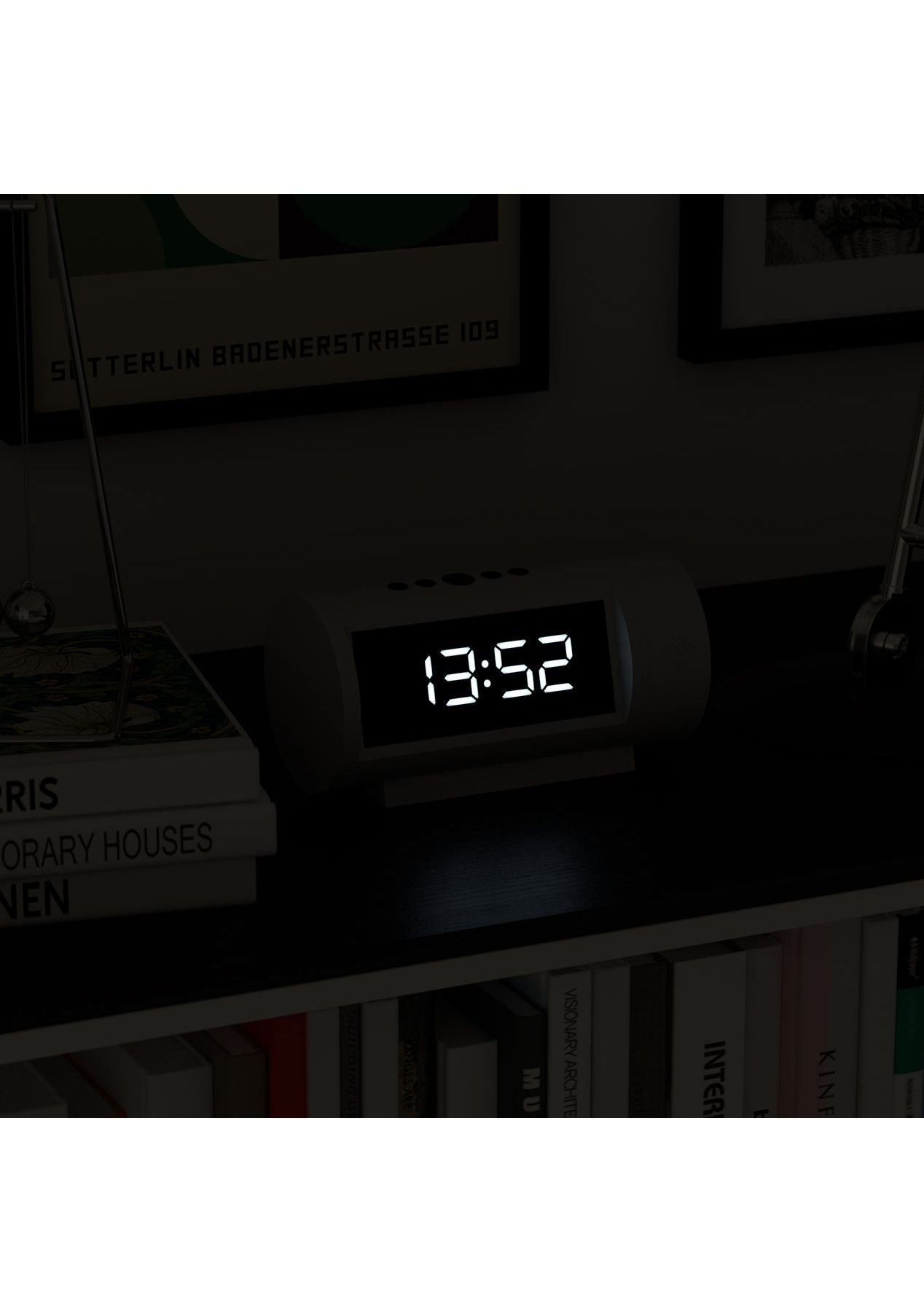 Newgate Pil Led Alarm Clock White A tubular, white retro LED alarm clock with a cut-out black screen that provides the perfect modern bedside or desk accessory.The unique Pil alarm clock design incorporates a 12 or 24-hour time display, a digital alarm and snooze function, and a temperature display.The screen will be dimmer when running on batteries alone, but bright when you hit the button on top, unless you have the USB cable connected in which case the screen will be really bright. The display will only be backlit continuously when connected to a power source with the included USB cable or a DC adaptor (not included). 3 x AAA batteries (not included) are required to retain time and alarm settings- 12 or 24-hour format- LED screen- Alarm and snooze function- Temperature display 0-50°C- Night screen brightness setting- USB power cable included- Size: HWD 9 x 17.5 x 8.5 cm / 3.5 x 6.9 x 3.3in - Materials: Acrylic case, Black LED screen- Colour: White/Black- Movement: Digital- Power: 1x USB cable included, 3 x high-quality branded AAA batteries (not included)