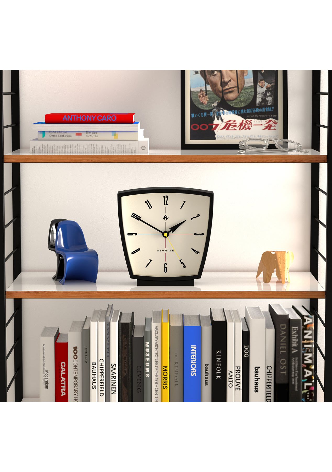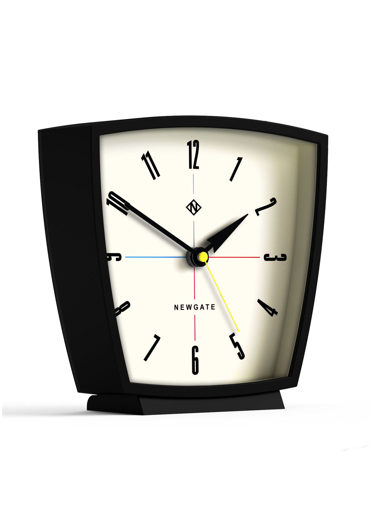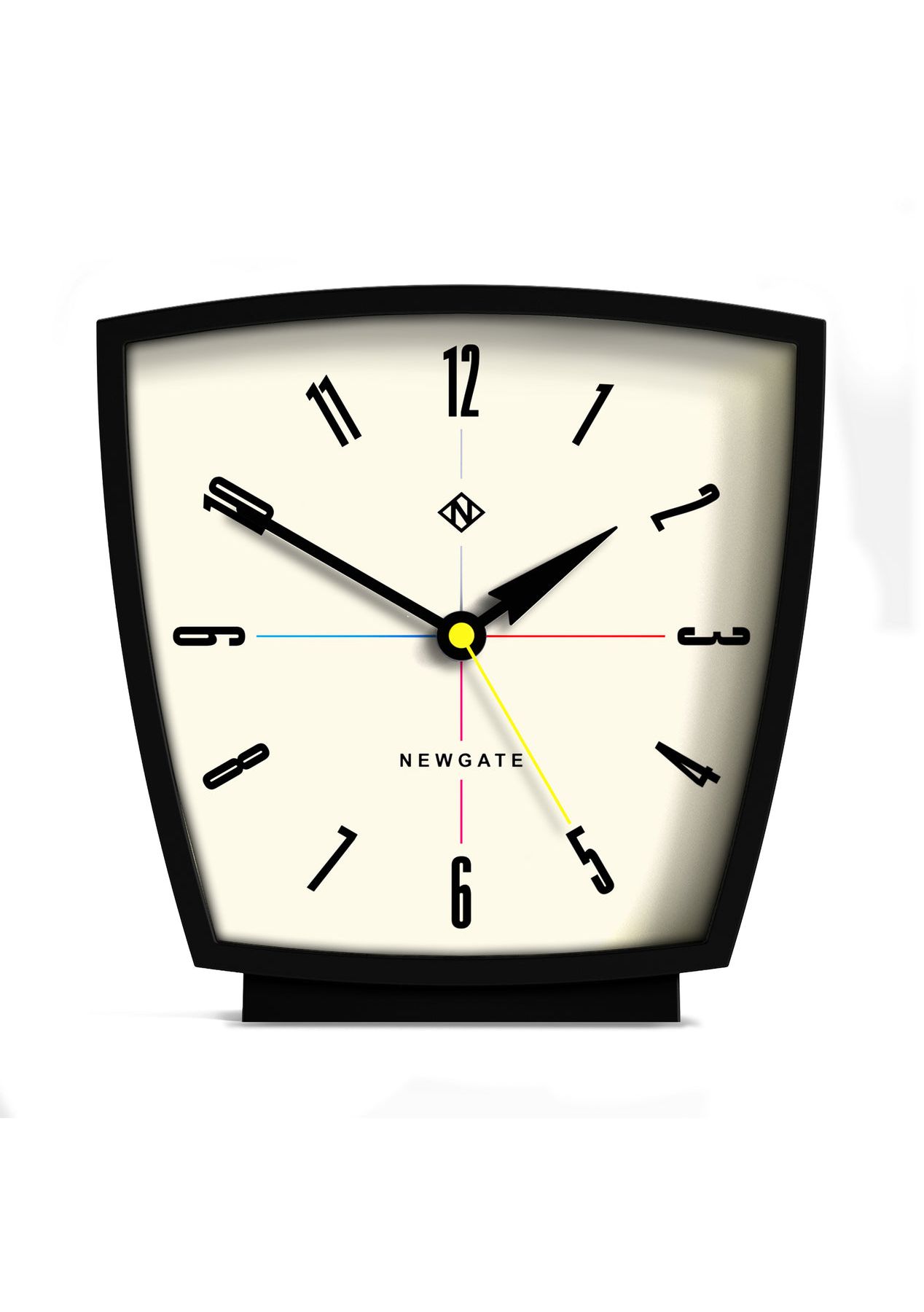 Newgate Odyssey Mantel Clock Black A modern black mantel clock with a cream face and contemporary offset numerals. Known as ‚silent sweep‚ in the industry, the hands move in a constant sweeping motion rather than a stepped tick. So you won‚t hear any ticking but if your hearing is particularly sensitive in a completely silent room you may hear a very quiet whirring. - Dimensions: HWD 20.3 x 20.2 x 6.5cm; - Materials: Silicone coated acrylic case, metal hands and cream dial- Colour: Matt black case with cream dial- Movement: Quartz ‚Silent Sweep'- Power: Requires 1 x high quality branded alkaline AA battery (not included)