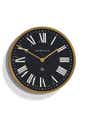 Newgate Mr Butler Wall Clock Radial Brass A Large Roman Numeral Wall Clock | Radial Brass EffectA large radial brass effect wall clock with a classic Roman Numeral dial and dark petrol blue face. This timeless design is finished with a flat glass lens and straight brass-finish hands. - Material: Metal, Acrylic, Paper, Glass- Colour: Brass/Black- Movement: Quartz- Power: 1 x AA (not included)- Dimensions: LWH 9.2 x 45 x 45cm- Weight: 2.04kg