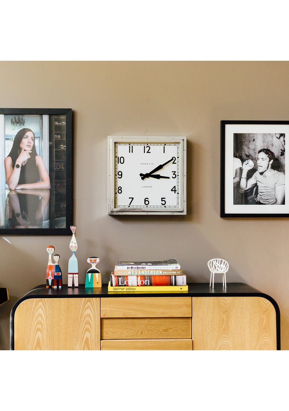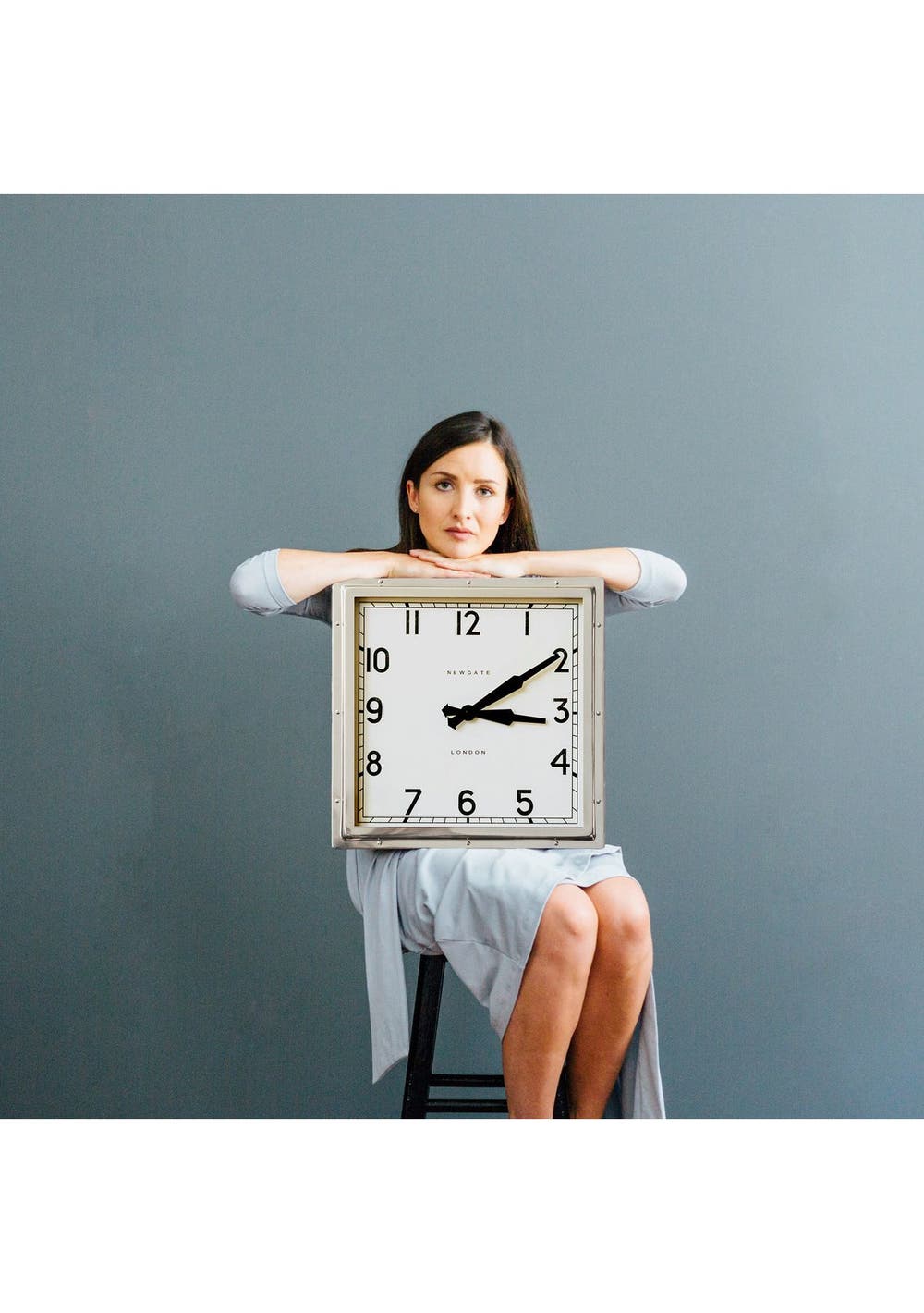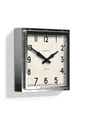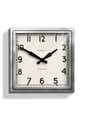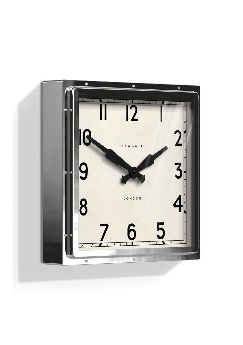 Newgate Quad Clock Chrome An industrial-style wall clock with a square polished stainless steel metal case featuring exposed rivets.This iconic Newgate wall clock has antique-effect age markings on the mid-Century inspired dial to recreate the appearance of a vintage timepiece. Time is measured by retro metal propeller hands behind a flat glass lens. A faint tick can be heard in a totally silent environment such as a bedroom. - Dimensions: HWD 40 x 40 x 9cm / 15.7 x 15.7 x 3.6in- Materials: Metal, Vintage-look Dial, Glass lens- Colour: Polished Stainless Steel- Movement: Quartz. A faint tick can be heard.- Power: Requires 1 x high quality branded alkaline AA battery (not included)