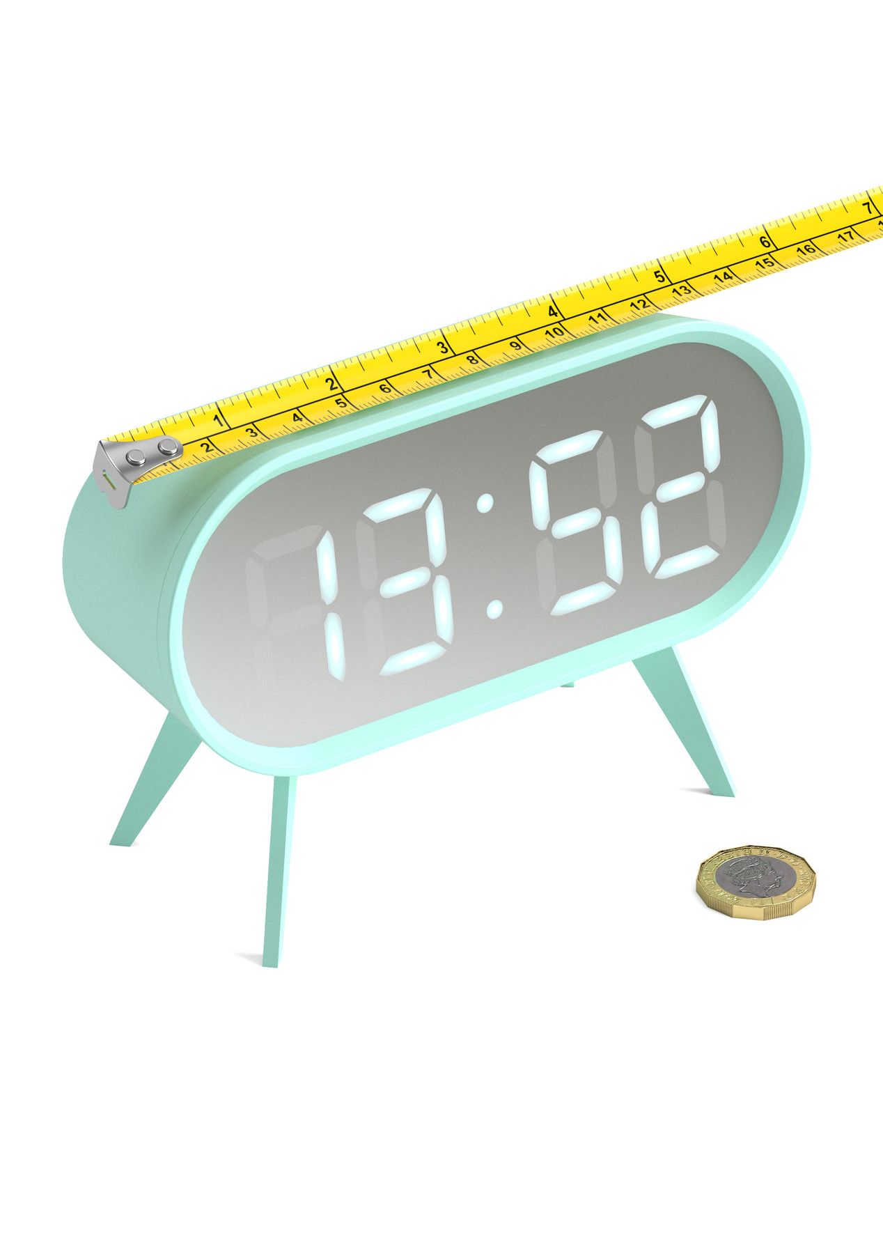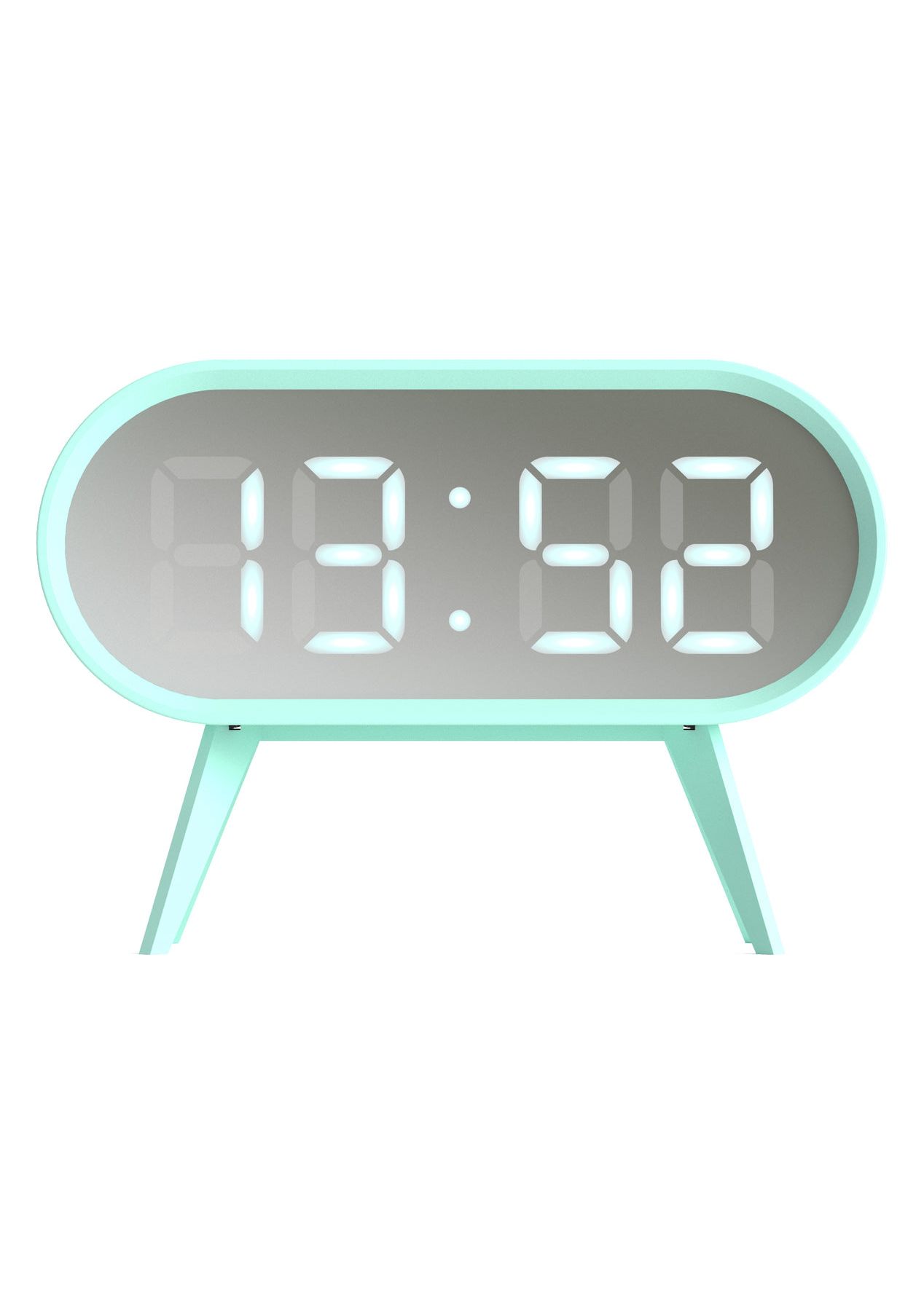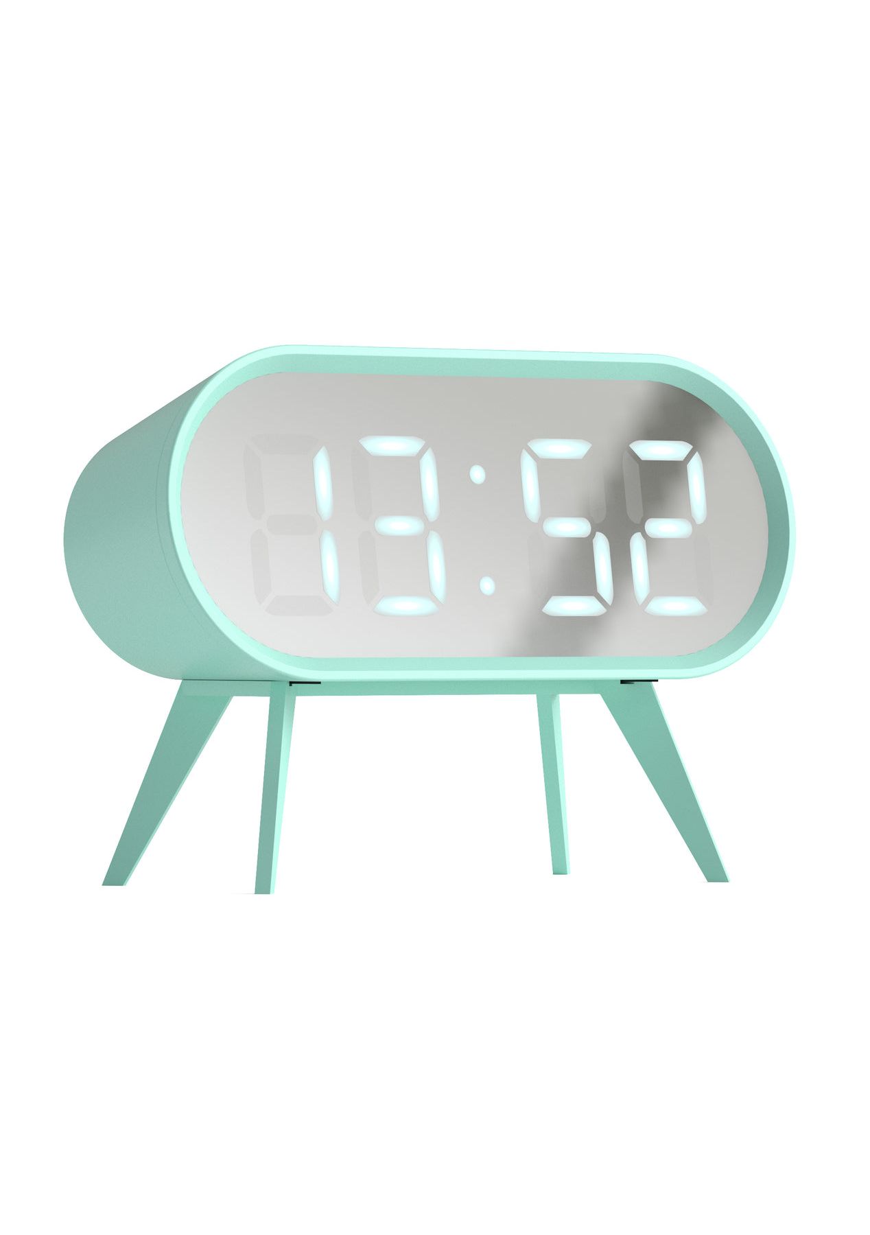 Newgate Space Hotel Cyborg Led Alarm Clock Blue This futuristic digital alarm clock is inspired by space exploration and the design of the lunar landing craft. A lozenge-shaped case coated in smooth matt blue silicone is raised on four angled tetrapod legs with a silver effect mirrored LED screen to display the time; a vital addition to any aspiring intergalactic explorer's bedside or desk. The unusual alarm clock design incorporates a 12 or 24-hour time display, a digital beep alarm, a snooze function, night mode and brightness adjustment, and an optional temperature display. The time will display continuously only when connected to a power source with the included USB cable or a DC adaptor (not included). 3 x AAA batteries (not included) are required to retain time and alarm settings.- 12 or 24-hour format- Digital beep alarm- Snooze function with intervals of 5 - 60 minutes- Temperature display- Night mode function with automatic dimming- 2 x brightness settings- Size: HWD 11.9 x 14 x 6cm / 4.7 x 5.5 x 2.4in - Materials: Acrylic case, silver effect mirrored LED dial- Colour: Blue- Movement: Digital- Power: 1x USB cable included, 3 x high-quality branded AAA batteries (not included), DC input 5V/500mA - 1000mA (not included)