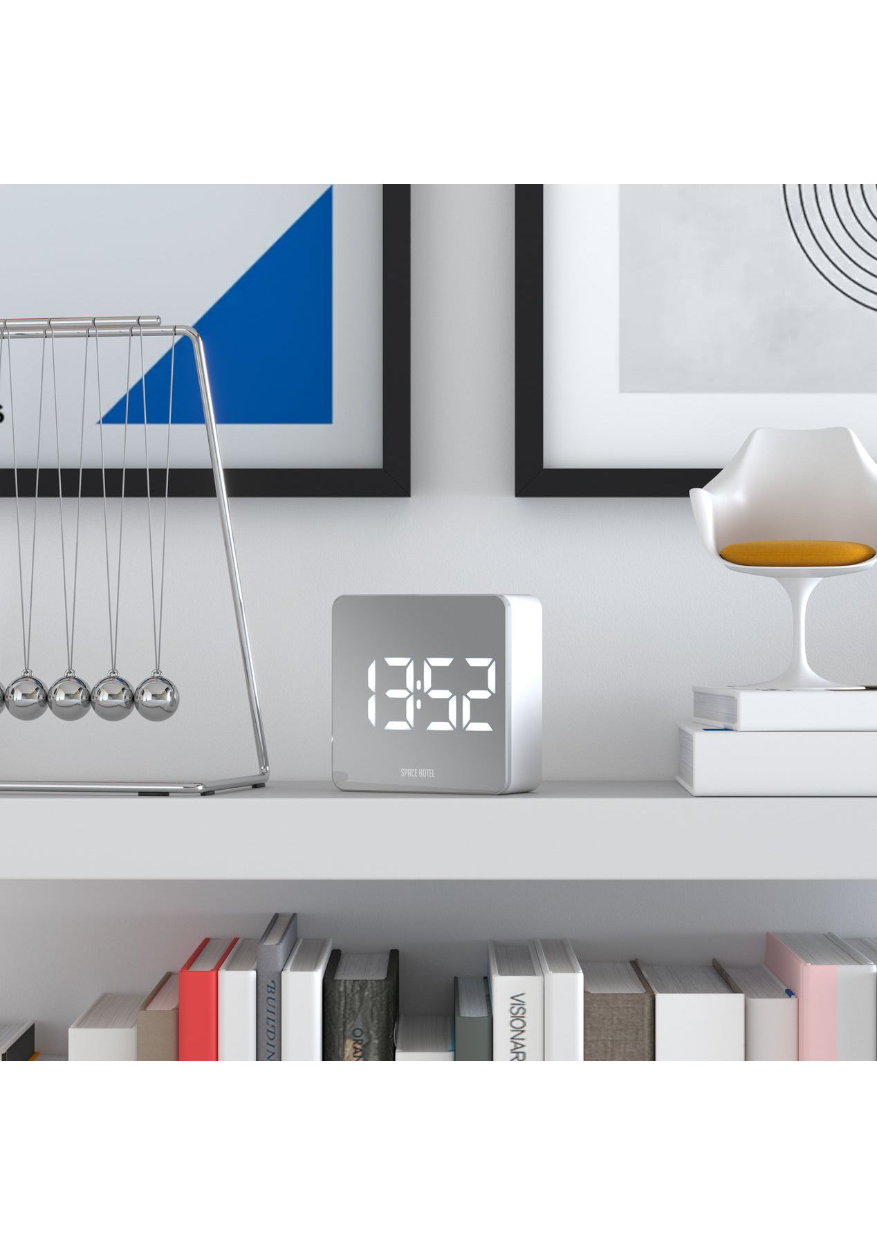 Newgate Space Hotel Orbatron Alarm Clock White Case - Silver Lens - White Led