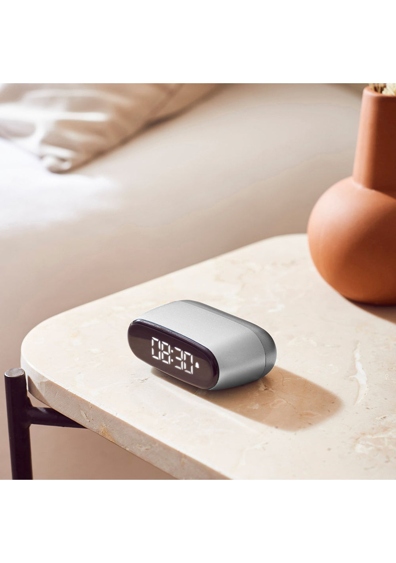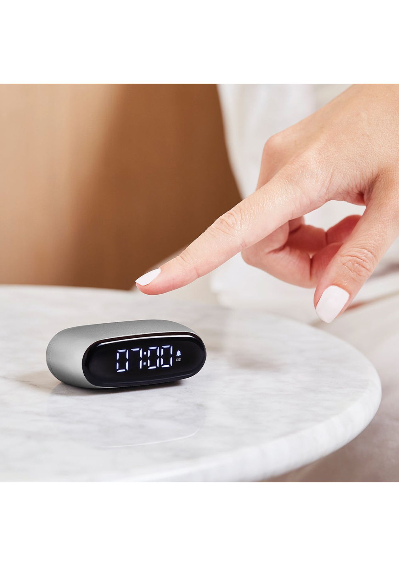 Lexon Minut Mini Alarm Clock - Alu Polish - Minut is a stylish and tiny alarm clock that fits in the palm of your hand. Its ultra compact size makes it easy to fit right on a nightstand and pack for travel. Featuring easy-to-use touch controls to light up the screen and trigger the snooze function, Minut gives you some extra shut-eye when needed. Equipped with pure VA LCD display, Minut allows you to check the time clearly at any position in the room. Crafted in a sleek aluminum finish, this cute little alarm clock is the perfect accessory to upgrade your bedroom decor. Offering up to 6 months of battery life, Minut is rechargeable via USB-c using the supplied cable. ‚ Pocket-sized alarm clock‚ Full black LCD display‚ Built-in rechargeable battery‚ Touch controls‚ Snooze function‚ Battery life: Up to 6 months