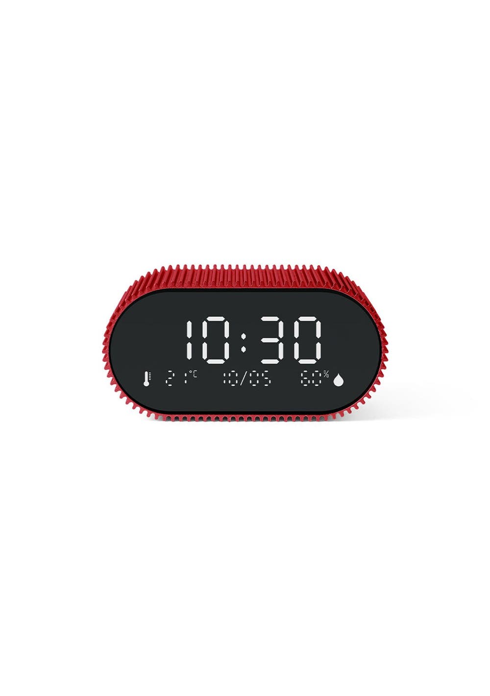 Lexon Ray Clock Lcd Alarm Clock With Temperature / Humidity Display - Red - Discover Ray Clock alarm clock, the essential companion for gentle awakenings and peaceful nights. Equipped with a pure black VA LCD screen ensuring clear visibility at all times, ambient temperature and humidity sensors, it displays useful information for your daily well-being. Designed to be easy to use, simply tilt the alarm clock on its base to disable it and upright it to activate it. Ray Clock offers a wide choice of melodies and natural sounds to wake you up gently. Its night mode allows you to sleep peacefully, without being disturbed by the light of the screen. Ray Clock features a minimalist and elegant design, with its case made entirely of aluminum with unique stripes which will bring a touch of modernity to your room. Available in many colours, it will fit harmoniously into your interior. Offering up to 6 months of battery life, Ray Clock is rechargeable via USB-C. Say goodbye to the hassle of dead batteries! You can rely on your alarm clock to accompany you for several months without worrying about frequent recharging.‚ Alarm clock with indoor thermometer and hygrometer‚ Tilt to activate/deactivate alarm‚ 9 melodies & natural sounds‚ Snooze function‚ Indoor temperature and relative humidity display‚ Battery life: Up to 6 months‚ Charge time: 4h‚ Rechargeable via USB-C (cable included)