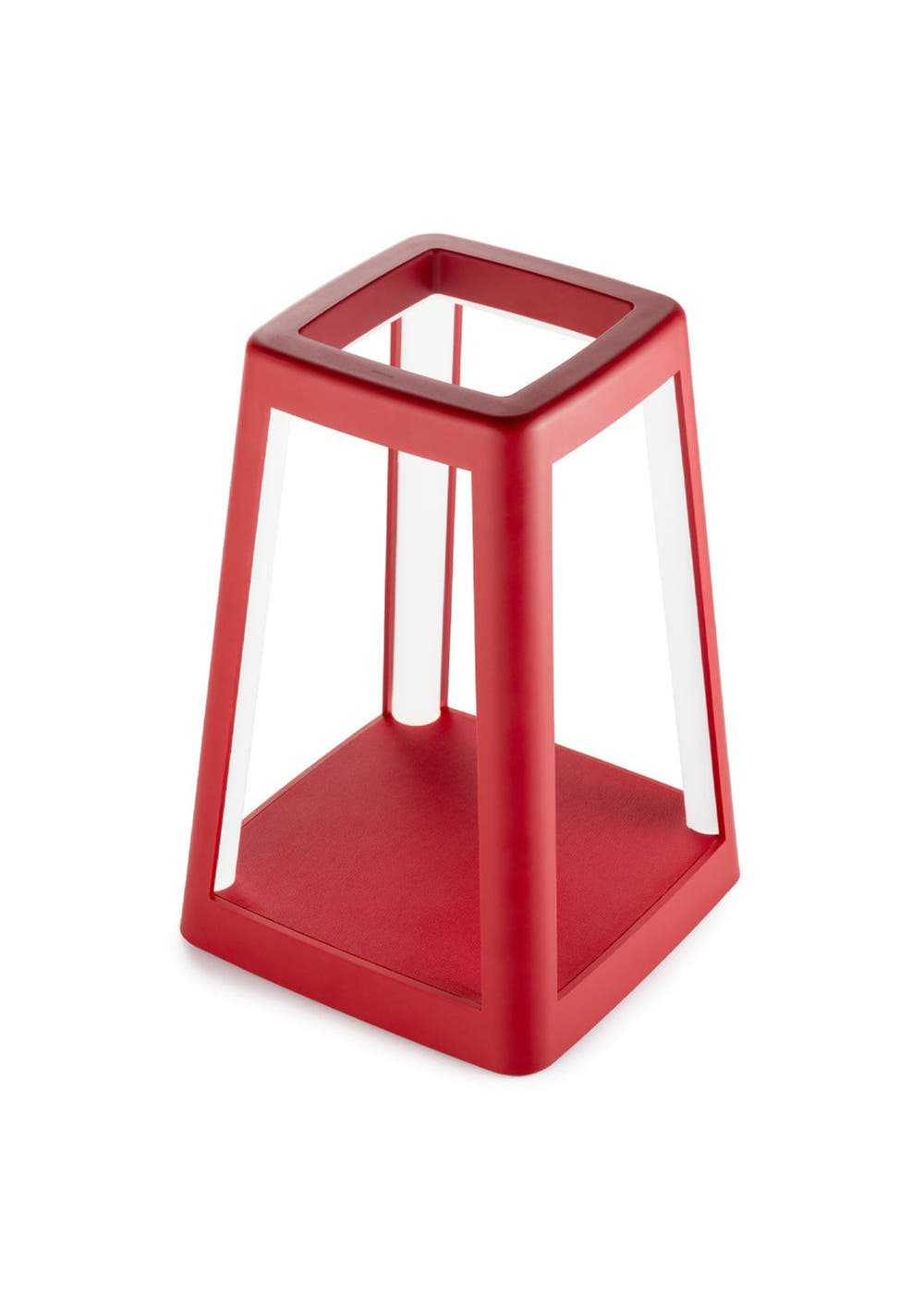 Lexon Lantern Portable Lamp With Built-In Wireless Charger - Red - With the Lantern, you have complete control over your lighting setup. Simply press the touch button situated at the top of the lamp to switch between cool or warm white light, or select one of the 7 different LED colors available. Thanks to its dimmer function, you can adjust the brightness to suit your preferences, crafting the ideal atmosphere for any occasion. In addition to illuminating your space, the Lantern is also equipped with a built-in 15W wireless charger. Say goodbye to bulky cables! Simply place your smartphone or any other Qi-compatible device on the lamp base for fast and convenient charging. Crafted to be as beautiful as it is functional, the Lantern is perfectly suited for outdoor use, thanks to its IPX4 certification. Whether it's for an outdoor gathering or a picnic, the Lantern is your ideal companion. Get the most out of the Lantern's light during your evenings with its impressive battery life of up to 8 hours. Simply recharge it via USB-C using the provided cable. ‚ Portable LED lamp with built-in Qi wireless charger‚ Cool or warm white light + 7 colors‚ Maximum light output: 100 lm‚ Dimmer‚ Touch controls‚ Outdoor friendly design (IPX4)‚ Battery life: Up to 8h‚ Charge time: 4h‚ Rechargeable via USB-C (cable included) or wirelessly