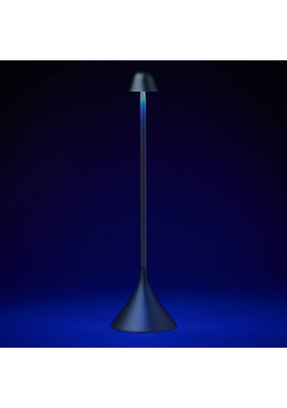 Lexon Steli Bell Infinitely Pairable Table Lamp - Blue - Steli is a slim portable lamp that features 9 LED colors and adjustable brightness which can be controlled by pressing the top of the lamp. Available in three different models - shade, bell and dome - this lamp is designed with an elegant aluminum finish and can be used both indoors and outdoors. Offering up to 10 hours of battery life, rechargeable via USB-C or wirelessly, Steli is the perfect lamp to proudly light-up your terrace, dinner table, desk or bedside table.‚ Infinitely synchronizable LED lamp‚ Cool or warm white light + 7 colors‚ Maximum light output: 120 lm‚ Dimmer‚ Touch control‚ Outdoor friendly design (IPX4)‚ Battery life: Up to 10h‚ Charge time: 3h‚ Rechargeable via USB-C (cable included) or wirelessly (inductive charging)‚ Power supply: 5V USB power adapter (not included)