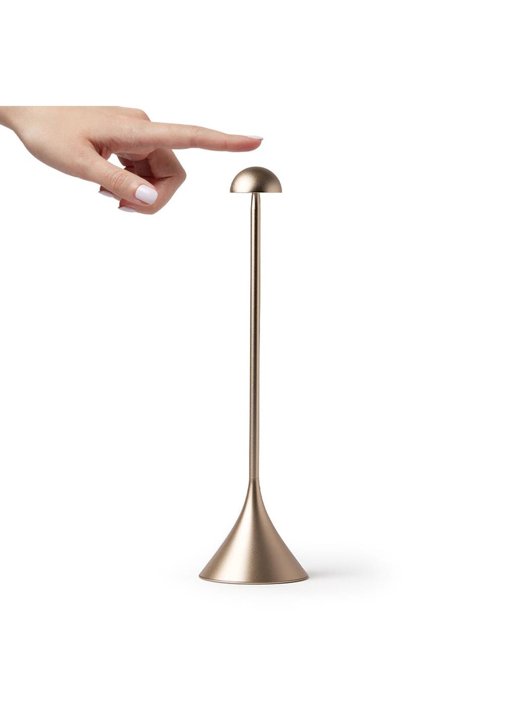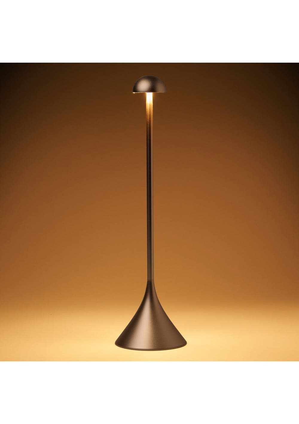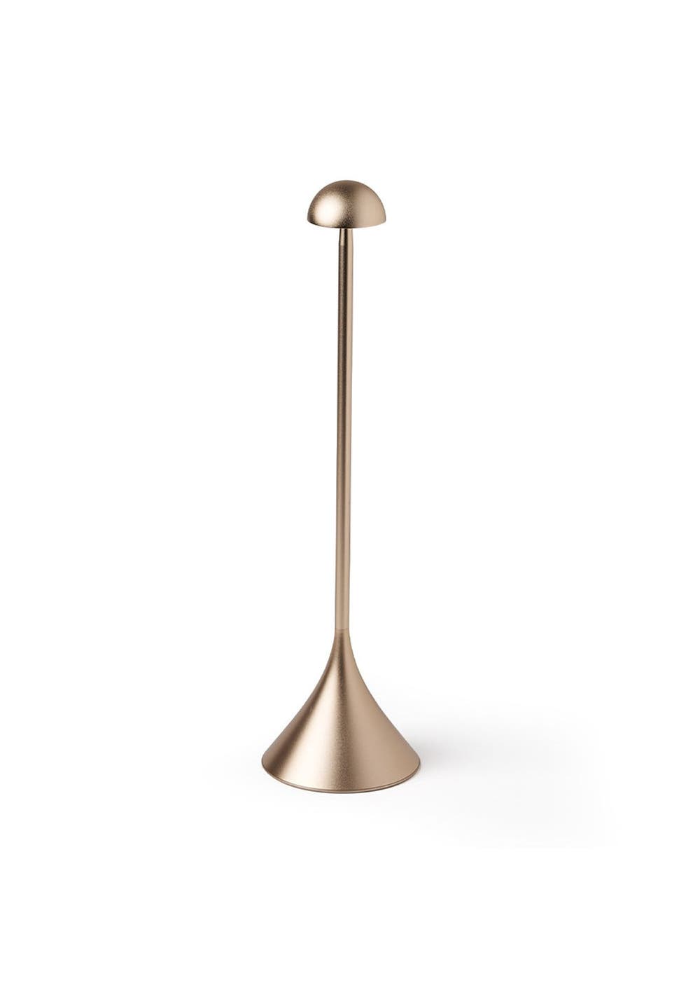 Lexon Steli Dome Infinitely Pairable Table Lamp - Gold - Steli is a slim portable lamp that features 9 LED colors and adjustable brightness which can be controlled by pressing the top of the lamp. Available in three different models - shade, bell and dome - this lamp is designed with an elegant aluminum finish and can be used both indoors and outdoors. Offering up to 10 hours of battery life, rechargeable via USB-C or wirelessly, Steli is the perfect lamp to proudly light-up your terrace, dinner table, desk or bedside table.‚ Infinitely synchronizable LED lamp‚ Cool or warm white light + 7 colors‚ Maximum light output: 120 lm‚ Dimmer‚ Touch control‚ Outdoor friendly design (IPX4)‚ Battery life: Up to 10h‚ Charge time: 3h‚ Rechargeable via USB-C (cable included) or wirelessly (inductive charging)‚ Power supply: 5V USB power adapter (not included)