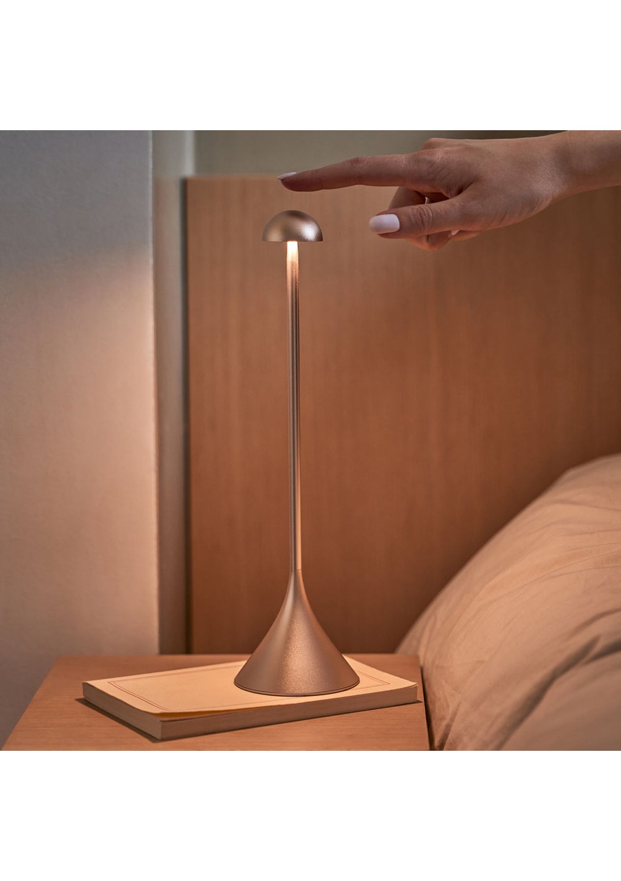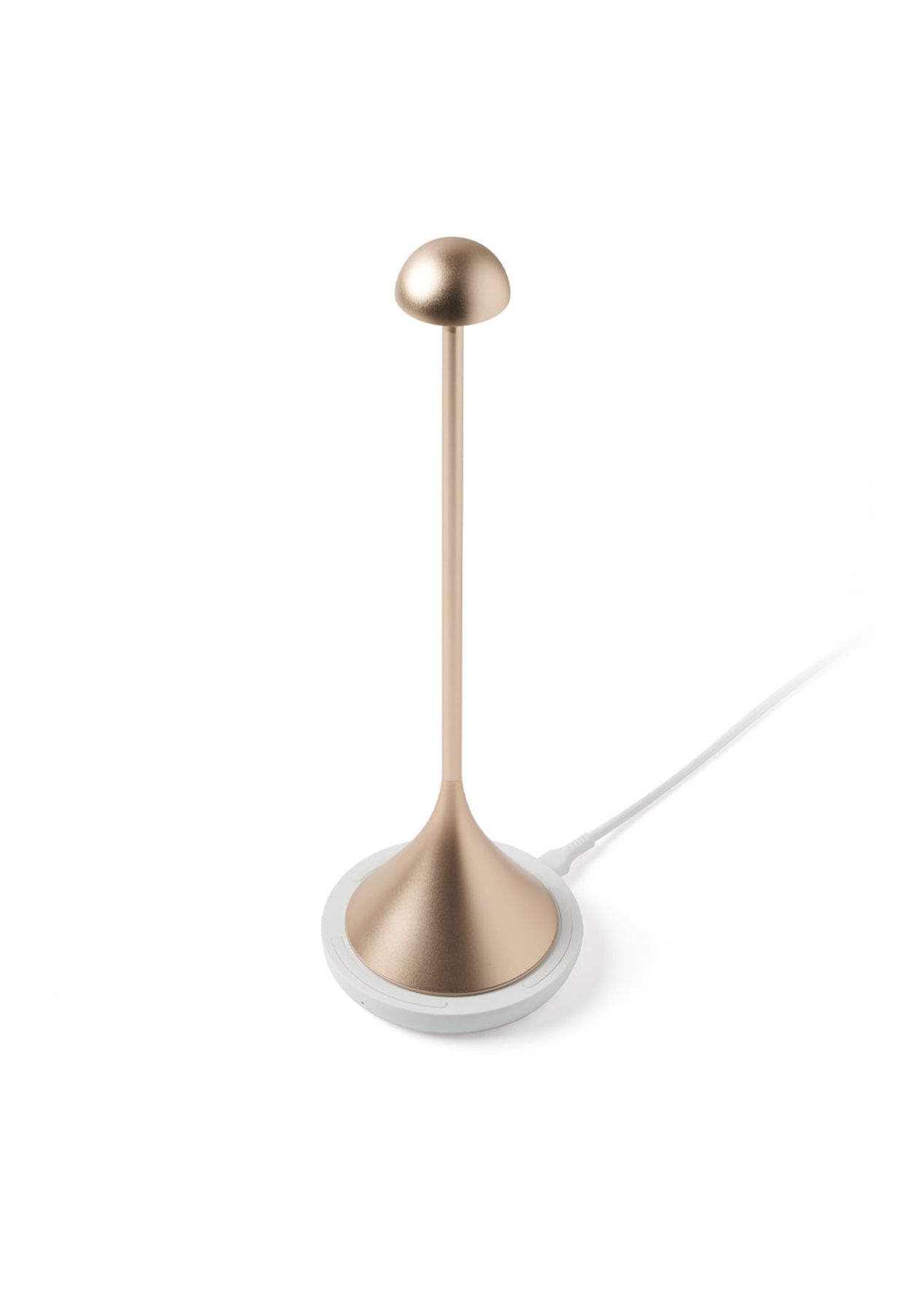 Lexon Steli Dome Infinitely Pairable Table Lamp - Gold - Steli is a slim portable lamp that features 9 LED colors and adjustable brightness which can be controlled by pressing the top of the lamp. Available in three different models - shade, bell and dome - this lamp is designed with an elegant aluminum finish and can be used both indoors and outdoors. Offering up to 10 hours of battery life, rechargeable via USB-C or wirelessly, Steli is the perfect lamp to proudly light-up your terrace, dinner table, desk or bedside table.‚ Infinitely synchronizable LED lamp‚ Cool or warm white light + 7 colors‚ Maximum light output: 120 lm‚ Dimmer‚ Touch control‚ Outdoor friendly design (IPX4)‚ Battery life: Up to 10h‚ Charge time: 3h‚ Rechargeable via USB-C (cable included) or wirelessly (inductive charging)‚ Power supply: 5V USB power adapter (not included)