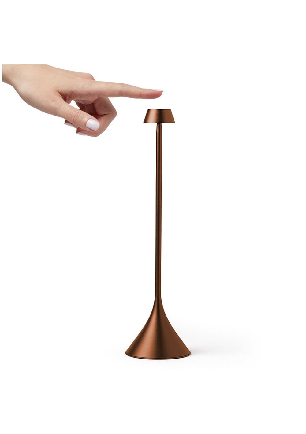 Lexon Steli Shade Infinitely Pairable Table Lamp - Bronze - Steli is a slim portable lamp that features 9 LED colors and adjustable brightness which can be controlled by pressing the top of the lamp. Available in three different models - shade, bell and dome - this lamp is designed with an elegant aluminum finish and can be used both indoors and outdoors. Offering up to 10 hours of battery life, rechargeable via USB-C or wirelessly, Steli is the perfect lamp to proudly light-up your terrace, dinner table, desk or bedside table. ‚ Infinitely synchronizable LED lamp ‚ Cool or warm white light + 7 colors ‚ Maximum light output: 120 lm ‚ Dimmer ‚ Touch control ‚ Outdoor friendly design (IPX4) ‚ Battery life: Up to 10h ‚ Charge time: 3h ‚ Rechargeable via USB-C (cable included) or wirelessly (inductive charging) ‚ Power supply: 5V USB power adapter (not included)