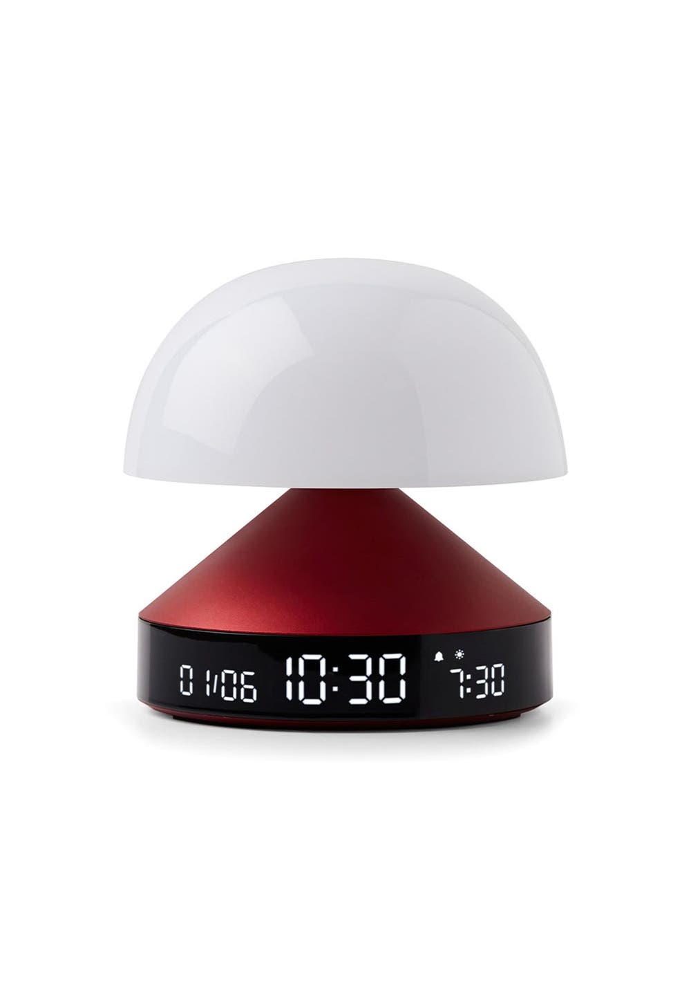 Lexon Mina Sunrise Sunrise Alarm Clock - Red - Mina Sunrise is a 3-in-1 lamp with sunrise and sunset effects, alarm clock and multicolored lighting. Wake-up gently thanks to the progressive daylight simulator combined with natural sounds at the desired time. Use the sunset function to fall asleep peacefully. 30 minutes before the set wake-up time, dark blue tones gradually change into warm white to block melatonin and assist you to get up naturally, in a good mood and feeling rested. At night, when sunset mode is on, Mina Sunrise switches from orange to red light to help trigger sleep. With its compact shape, aluminum base and high-quality display, Mina Sunrise has been designed to complement your nightstand and to be easy to interact with. Pressing the top of the lamp will turn the light on/off, choose among the 9 LED color, adjust brightness, or stop the ongoing alarm.‚ Sunrise alarm clock‚ Pure VA LCD display‚ Sunrise & Sunset simulation‚ 5 melodies & natural sounds‚ Lamp with 9 LED colors‚ Dimmer‚ Touch controls