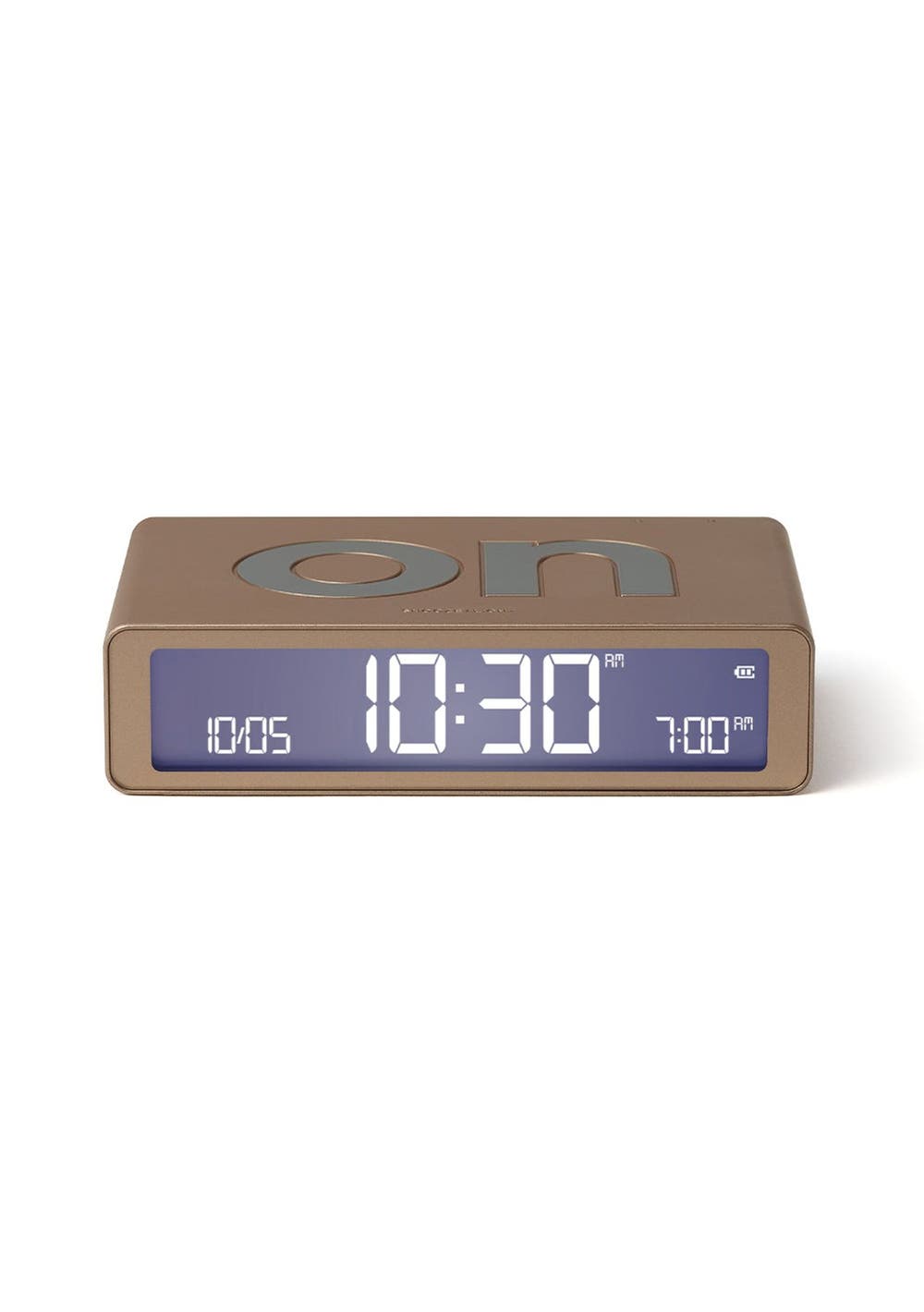 Lexon Flip Classic Reversible Alarm Clock - Gold - Fun and equipped with two faces (ON / OFF), the alarm clock must be turned down to be activated or deactivated with a simple gesture. Thanks to its integrated touch control, you just have to touch it to trigger the light of its LCD display. In addition, Flip Classic features some discreet buttons on its back to set the time/date format, alarm and screen brightness. Designed to be your ultimate bedside companion, Flip Classic boasts a 6-month battery life, rechargeable via USB-C. A battery indicator is visible on screen so you‚ll easily know when to recharge your device.‚ Reversible alarm clock‚ ON/OFF faces‚ LCD display‚ 3 Brightness levels‚ Touch sensor snooze / light‚ Rechargeable via USB-C (cable included)‚ Battery life: Up to 6 months‚ Charging time: 4h‚ Power supply: 5V USB power adapter (not included)