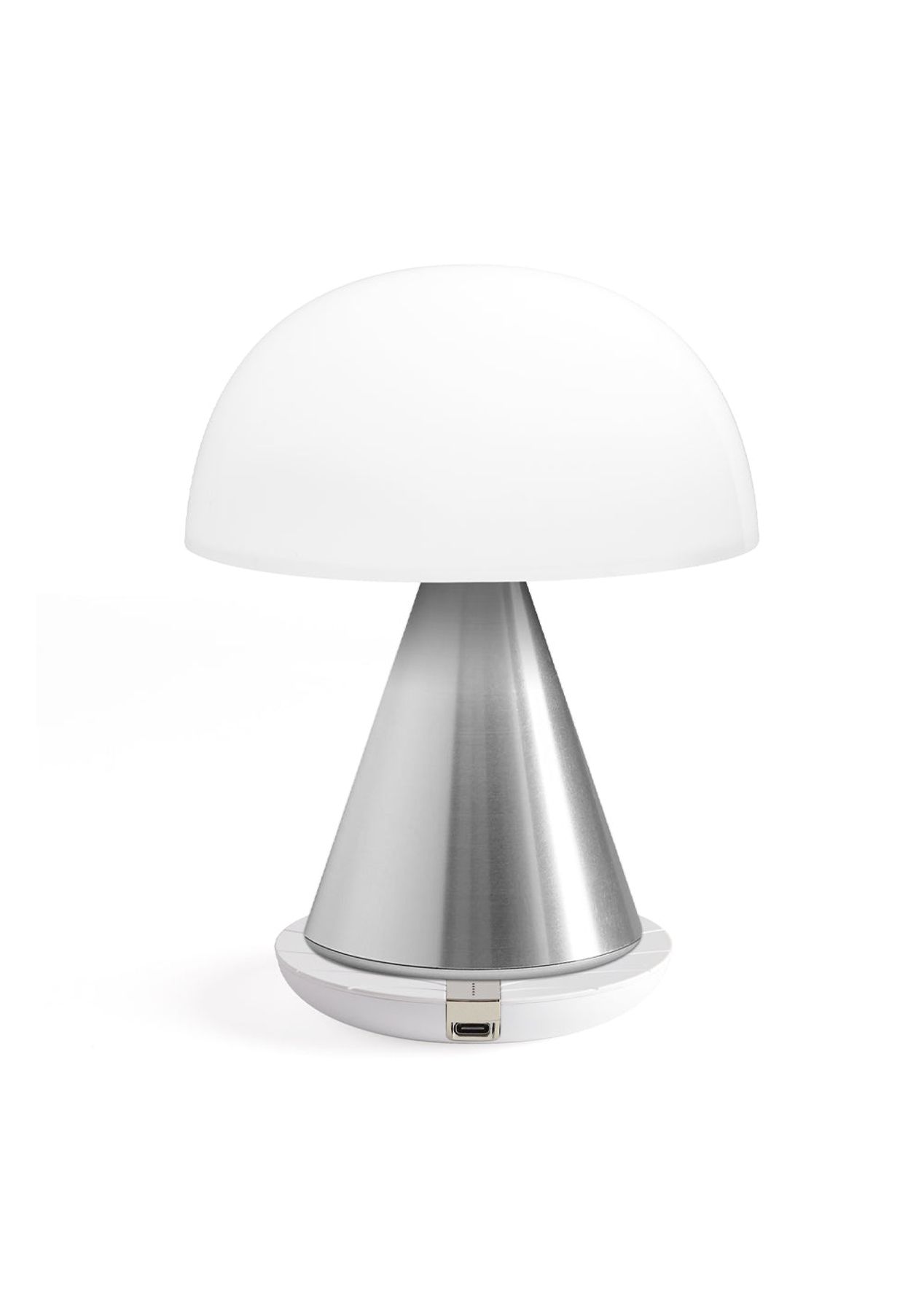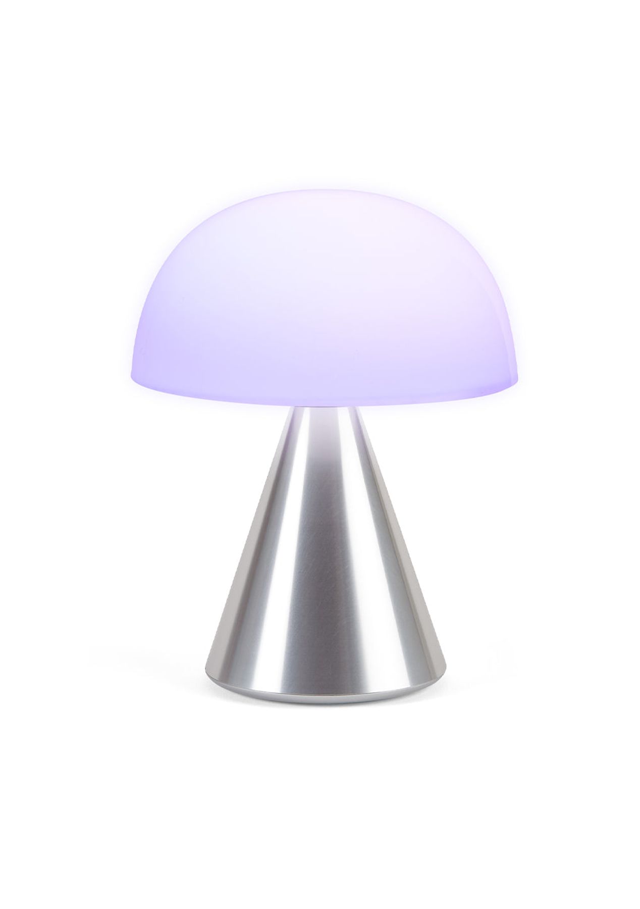 Lexon Mina L Large Portable Led Lamp - Alu Polish - The Mina L brings an exciting size, flourishing light, and stunning design all to one device. Make a statement wherever you use it, indoors or out. Mina L is rechargeable using any Qi-enabled wireless charging station. You can also use a USB-C charging cable to recharge the LED. An impressive 9 LED color range that you can bring to your bedside, workspace, or patio. The color change and dimming function are all controlled by a press down feature on the top of the light. The Mina L has up to 24h of battery life from a single charge, making it the perfect companion all day and night. Designed with an IPX4 water-resistant casing, means that it‚s okay if your Mina L is left outside in a little rain. - Large portable LED lamp- 9 LED colors- Push activation light- Dimmer- IPX4 water resistant- Autonomy: up to 24h (tested at 75% brightness, 22¬∞C ambient indoor temperature)- Charging time: 3h- Rechargeable via USB-C (cable included) or wirelessly -