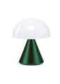 Lexon Mina Mini Led Lamp - Green - Mina makes an impressive impact on any space. Its compact design and delicate demeanour is a complementing combination that makes a statement. Mini LED lamp. Mina features two LED light settings - warm and cold - and a dimming function, all controlled by a button on the base of the lamp. - Cool or warm white light - Memory dimmer - Battery life: up to 12h (tested at 75% brightness, 22°C ambient indoor temperature) - Charging time: 2h - Rechargeable on USB-C port (cable included)